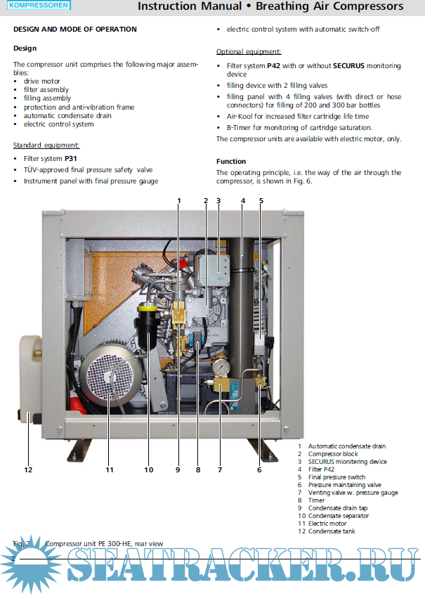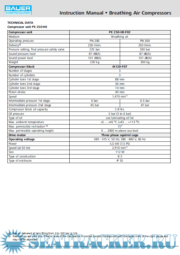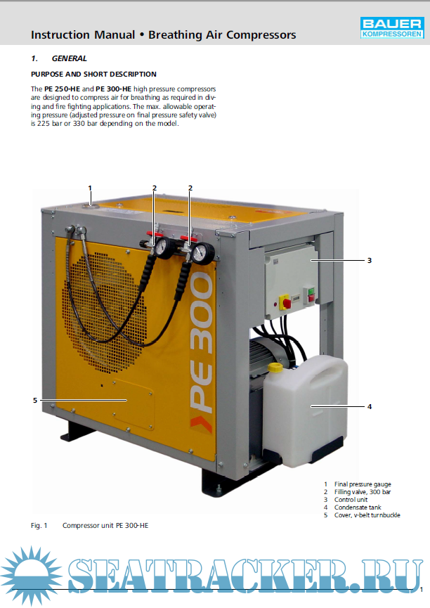 Bauer Compressor Poseidon Edition PE - 200/250/300 Operating Manual Breathing Air Compressor -…