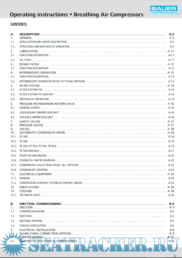 Bauer Compressor Poseidon Edition VE - 300-850 Breathing Air Compressor Operating Manual & Spare Parts Catalog