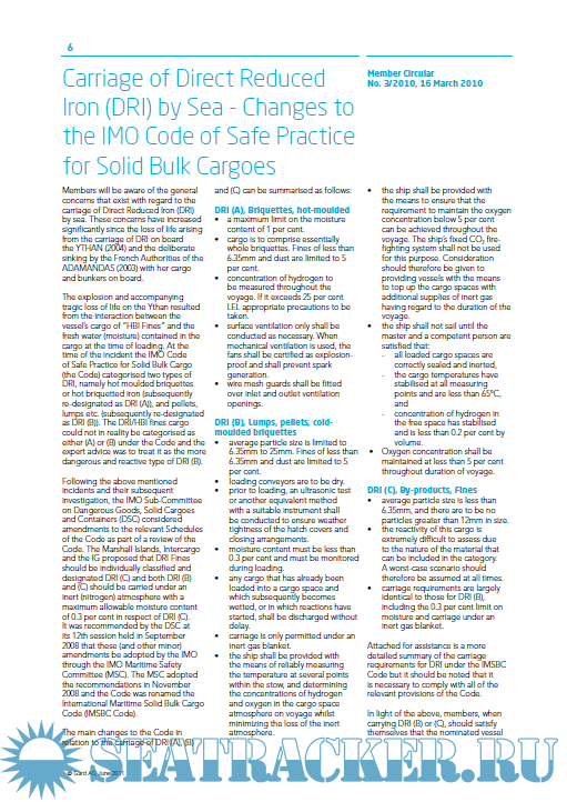 Description: Dangerous solid cargoes in bulk DRI - nickel and iron ores