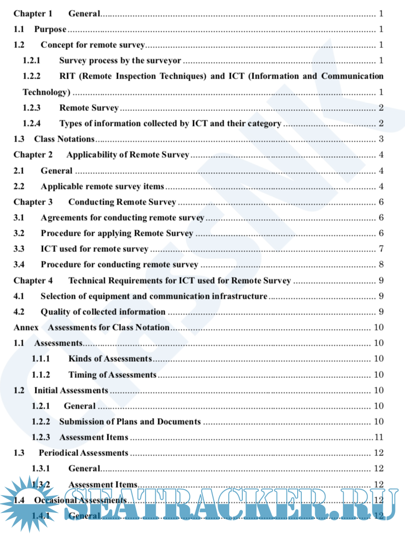 Year: 2021 Language: english Author: ClassNK Genre: Guide Publisher: ClassNk Edition: 3 Format: PDF Quality: eBook Pages count: 18 Description: With the recent trend of the Internet of Things (IoT), digitalization of business is progressing, and communication that utilizes communication technology is also spreading. Based on this situation, the Society has been working on the advancement of surveys using digital technology as research and development in line with the R&D roadmap published in 2017. For remote surveys, the Society has investigated and examined the types of surveys that can be applied, the types and amount of information required for remote surveys, and the requirements for ICT to be used, ensuring reliability equivalent to conventional witness surveys with transparency in the application of remote surveys. These guidelines are a summary of these results. These guidelines will be reviewed as necessary in accordance with the progress of related technology development. In line with the issuance of these guidelines, the related rules and guidance for the survey and construction of steel ships were revised in December, 2019. The rules and guidance for occasional surveys and surveys for equipment to be surveyed under the attendance of surveyors have been revised partly so that remote surveys can be applied when the Society recognizes that the necessary information for the survey can be obtained by using ICT. In accordance with these amendments, remote surveys can be applied for occasional surveys subject to compliance with the requirements of these guidelines in cases where it is difficult to dispatch surveyors of the Society or when survey contents are confirmation of minor damages or defects. The implementation of remote surveys depends on the communication capability of the ship, and cooperation of the crew is indispensable. Therefore, in order to carry out remote surveys effectively and efficiently, the communication capability of the ship and the equipment used for remote surveys should be clarified in advance, and procedures for remote surveys should be provided on board. The Society also made necessary revisions to these guidelines in January 2021 so that the notation “Remote Survey” (abbreviated as RMSV) can be affixed to the classification characters of the ships which are provided with advance preparation for remote surveys. Due to the COVID-19 pandemic since 2020, the Society has carried out a large number of remote surveys. Based on the findings from the experiences, these guidelines were fully reviewed and partly revised, e.g. specifying survey items for which remote survey is applicable, allowing the submission of applications for remote surveys to the Society’s branch offices as well as its head office. It is hoped that these guidelines will contribute to the realization of a more rational survey for ships involved in the maritime industry. Additional info: Older version here: