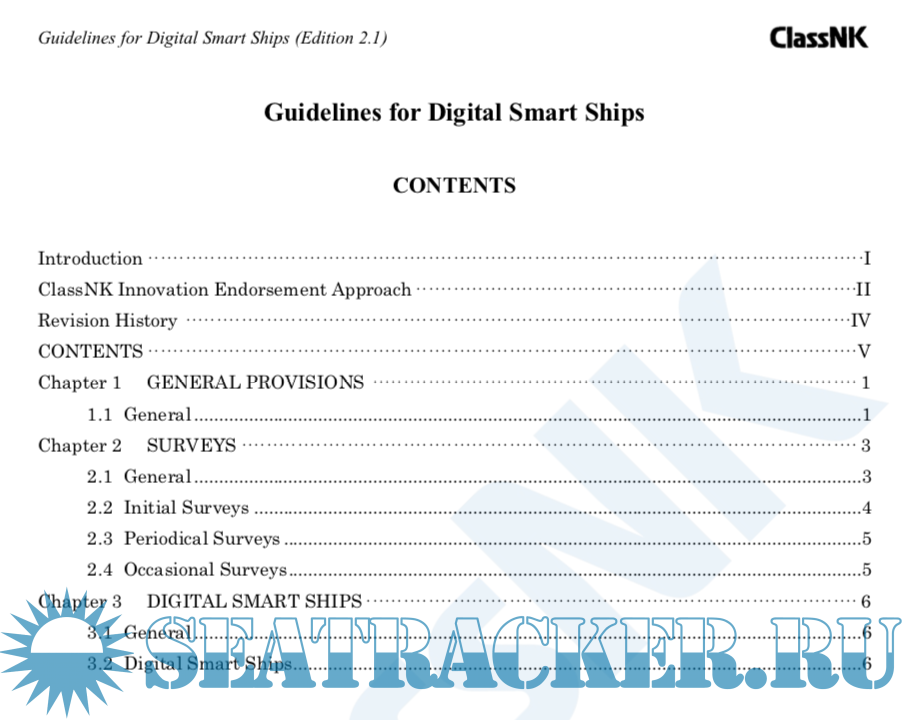 Year: 2021 Language: english Author: ClassNK Genre: Guide Publisher: ClassNk Edition: 2.1 Format: PDF Quality: eBook Pages count: 20 Description: The utilisation of Big Data is an issue currently being tackled worldwide not only by the maritime industry but by all industries. As part of its efforts, the maritime industry has already begun sharing and utilising data transferred from ships to shore-based facilities, which in turn has aided in the development of many innovative technologies. By proactively providing certification services for these innovations and promoting their spread and development, ClassNK strives to support the preservation of the marine environment, further improve safety at sea, and support the sustainable development referred to in the SDGs. Therefore, the “Innovation Endorsement” certification service which targets innovative digital technology is being launched in line with this policy. For ships applying digital technologies such as various types of monitoring and autonomous navigation (hereinafter referred to as “digital smart ships”), ClassNK decided to publish its Guidelines for Digital Smart Ships which specifies the relevant class notation that may be affixed to the classification characters of ships provided with smart systems (i.e. systems utilising digital technologies) that are in accordance with existing ClassNK Rules and Guidance. In addition, for ships provided with smart systems utilising innovative technologies not yet covered in this Guidelines, details are also specified for relevant class notation which may be affixed to classification characters of such ships in accordance with the types of smart systems they are using. ClassNK hopes that this Guidelines will be a positive contribution to current efforts being undertaken worldwide by the maritime industry not only for improving current ship operations but also for furthering the development of innovative technologies.