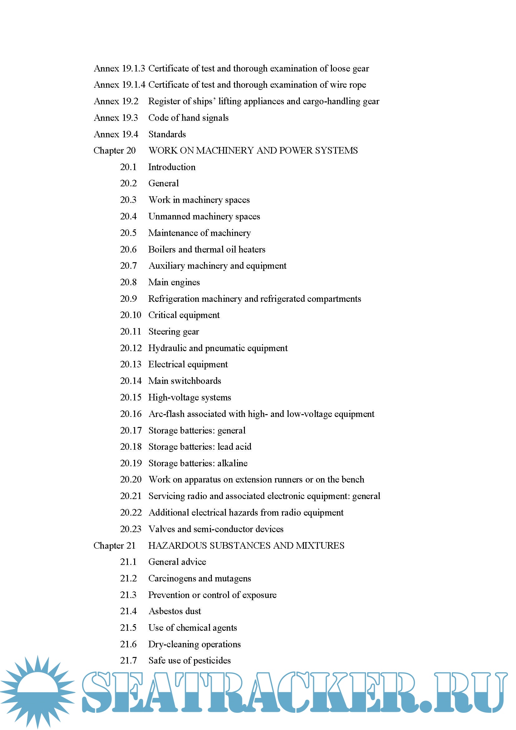 Year: 2021 Language: english Author: MCA Genre: Convention (rules) Edition: 2015 edition – Amendment 6, October 2021 Format: PDF Quality: eBook Pages count: 558 Description: This Code is published by the Maritime and Coastguard Agency (MCA) and endorsed by the National Maritime Occupational Health and Safety Committee, UK Chamber of Shipping, Nautilus International and the National Union of Rail, Maritime and Transport Workers (RMT) as best practice guidance for improving health and safety on board ship. It is intended primarily for merchant seafarers on UK-registered ships. It is a statutory requirement that seafarers are provided with the information necessary to ensure their health and safety. The MCA considers that on UK ships this means that all those with specific responsibilities for safety should have immediate access to this Code, and that it should be readily available to all seafarers on board, e.g. a copy should be kept in the mess room. It should be provided in appropriate formats (e.g. electronic and hard copy) in sufficient quantity to ensure easy access. The Code should be supplemented by safety manuals, work instructions and other guidance issued by shipping companies for their particular ships, as appropriate. The Code is addressed to everyone on a ship regardless of rank or rating, and to those ashore responsible for safety, because the recommendations can be effective only if they are understood by all and if everyone cooperates in their implementation. Those not actually engaged in a job in hand should be aware of what is being done, so that they may avoid putting themselves at risk or causing risk to others by impeding or needlessly interfering with the conduct of their work. Published 8 December 2021 :