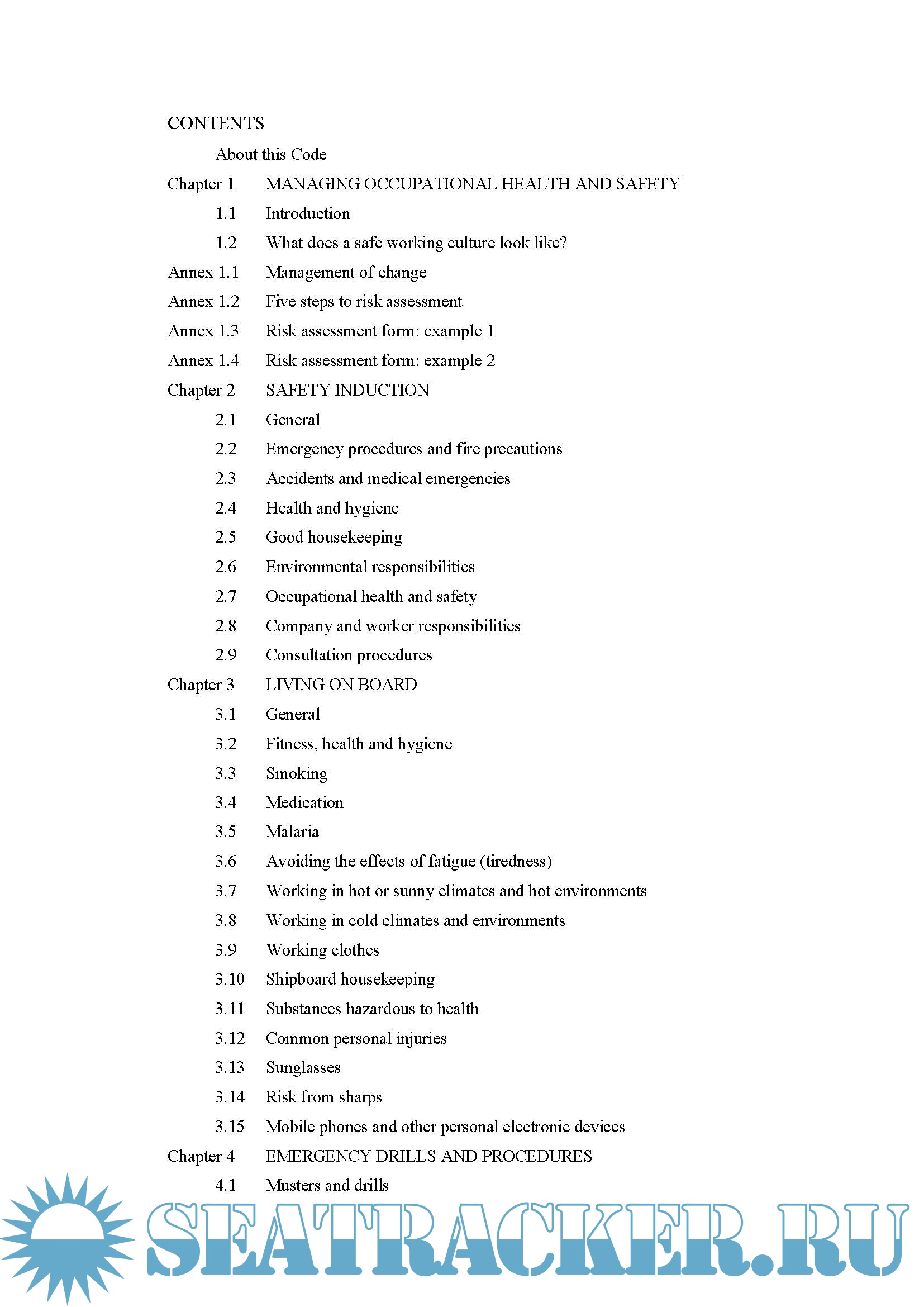 Description: This Code is published by the Maritime and Coastguard Agency (MCA) and endorsed by the National Maritime Occupational Health and Safety Committee, UK Chamber of Shipping, Nautilus International and the National Union of Rail, Maritime and Transport Workers (RMT) as best practice guidance for improving health and safety on board ship. It is intended primarily for merchant seafarers on UK-registered ships.