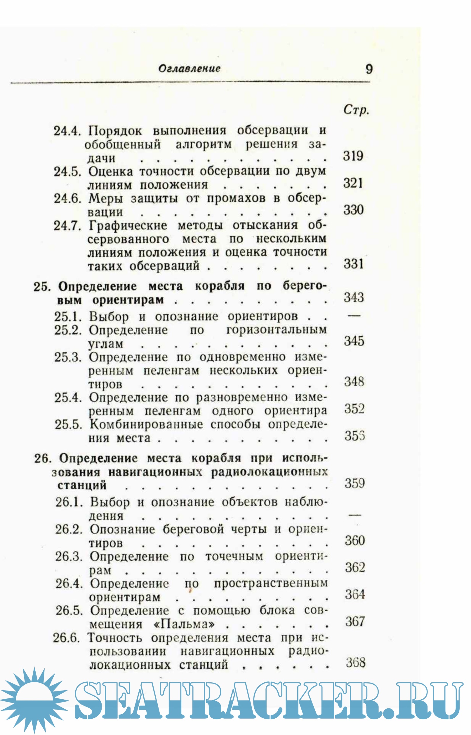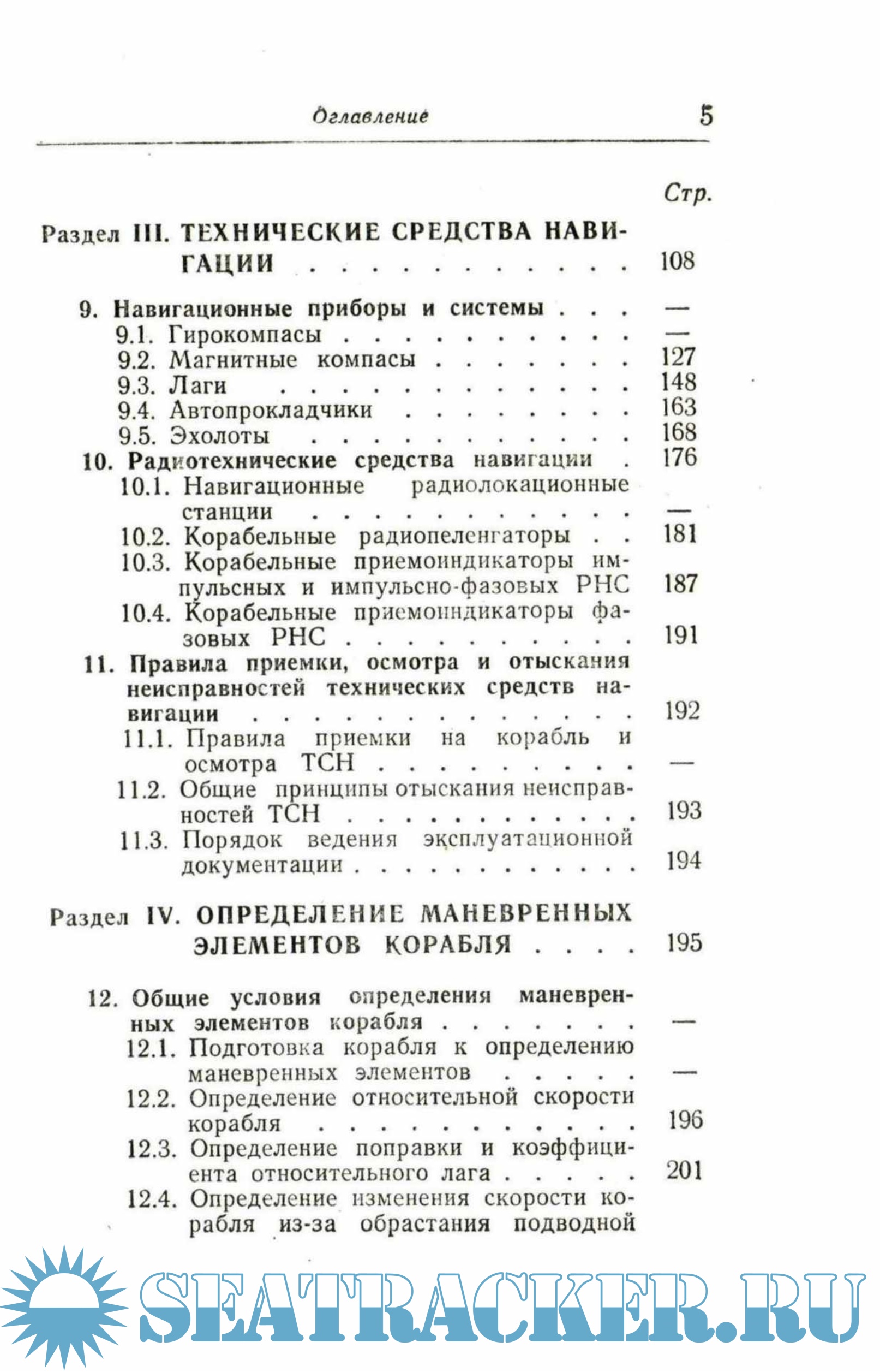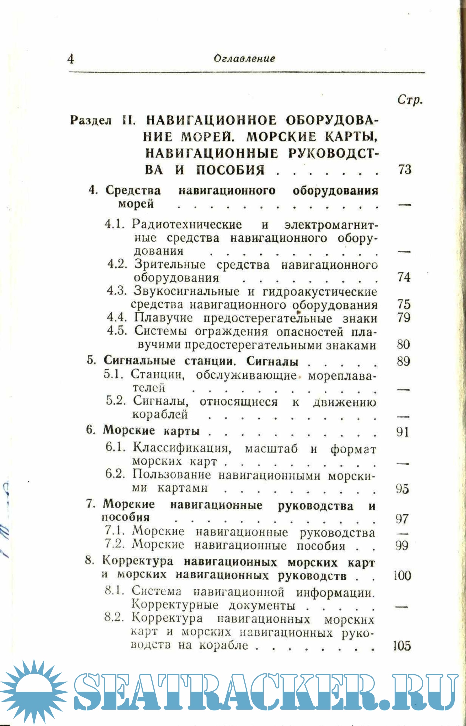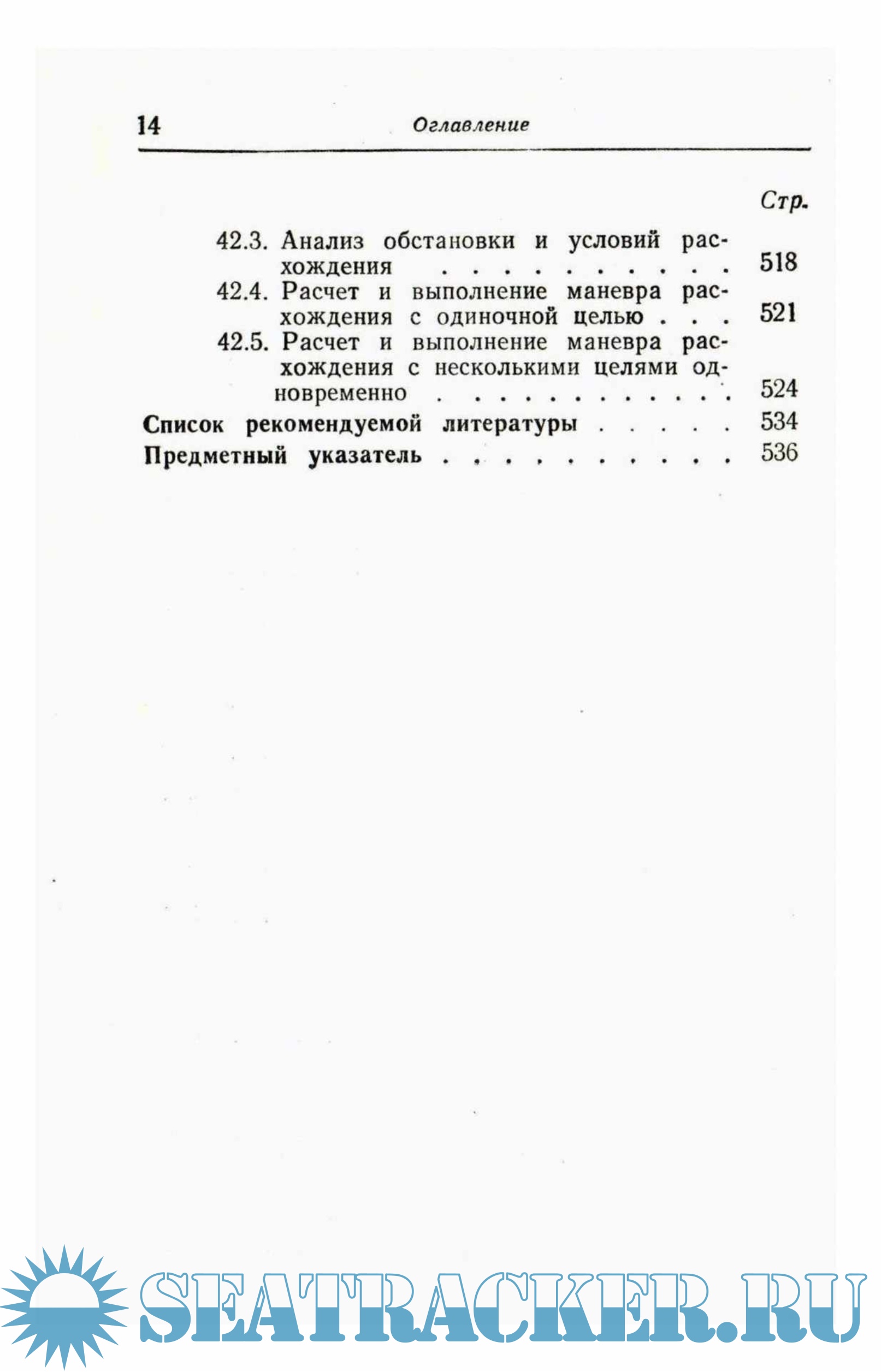 Описание: Содержит сведения по кораблевождению, техническим средствам навигации, описание навигационного оборудования морей, даны рекомендации по решению задач навигации, а также маневрированию для безопасного расхождения с кораблями и судами. Предназначен для офицеров ВМФ, судоводителей морского и промыслового флотов, может быть использован преподавателями, слушателями, курсантами высших военно-морских и мореходных училищ.