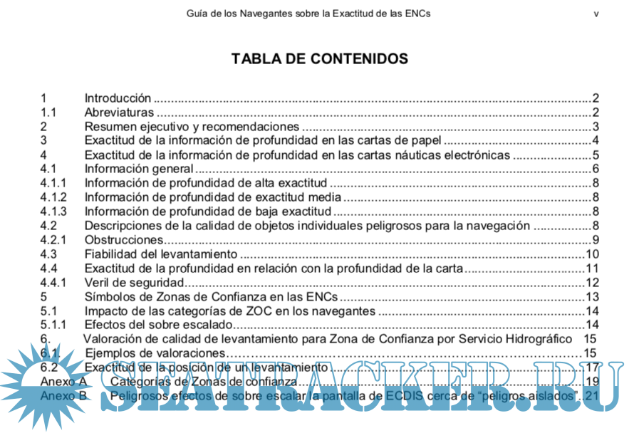 Description: La Publicación S-67 de la OHI “Guía de los Navegantes sobre la Exactitud de las ENCs” es una guía para navegantes y organismos de adiestramiento de navegantes sobre el grado de confianza que deberían tener en la idoneidad y exactitud de las profundidades y sus posiciones representadas en una Carta Náutica Electrónica.