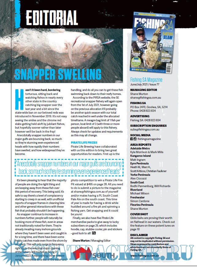 Description: Fishing SA Magazine is the favourite sport fishing magazine in South Australia, dedicated to all things fishing, camping, boating and outdoors.