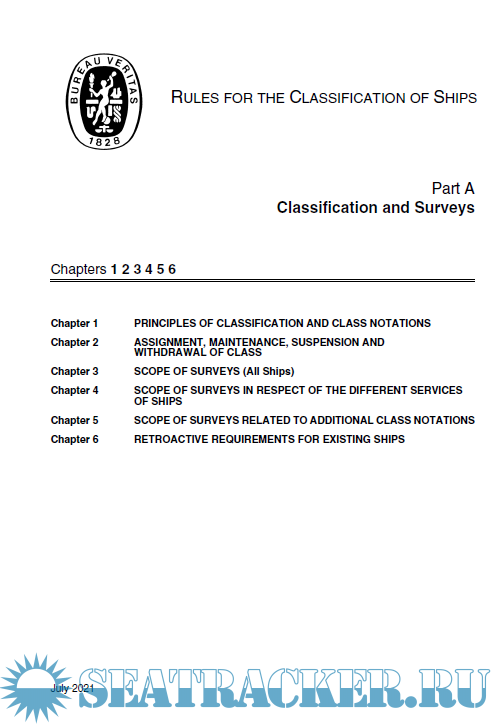 Description: BV - Rules for the Classification of Steel Ships - PART A – Classification and Surveys - 2021