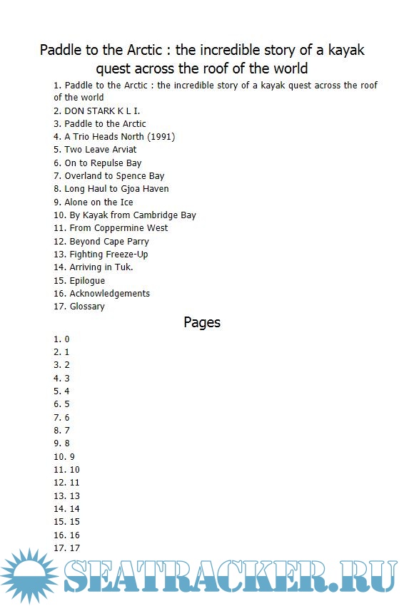 Year: 1999 Language: english Author: Starkell D. Genre: History Publisher: McClelland & Stewart ISBN: 0771082657 Format: EPUB Quality: eBook Pages count: 243 Description: After his astounding 12,000-mile canoe trip from Winnipeg down to the Amazon (recounted in his bestseller Paddle to the Amazon on page 48), Don Starkell decided to paddle a kayak from Hudson Bay 3,000 miles through the Northwest Passage. This is Don's diary of this journey from Churchill, Manitoba, to Tuktoyaktuk, close to Alaska, a voyage by kayak (paddled on water or dragged on a sled over the ice) that took him three Arctic summers and almost cost him his life. Through this compelling book we find ourselves sharing his blazing, driving determination to reach his goal, as he closes in on his destination, with his supplies running out and his ocean highway freezing over, making death a near certainty. Armchair travel at its best. Additional info: About the Author DON STARKELL (December 7, 1932 – January 28, 2012) was a Canadian adventurer, diarist and author, perhaps best known for his achievements in canoeing.