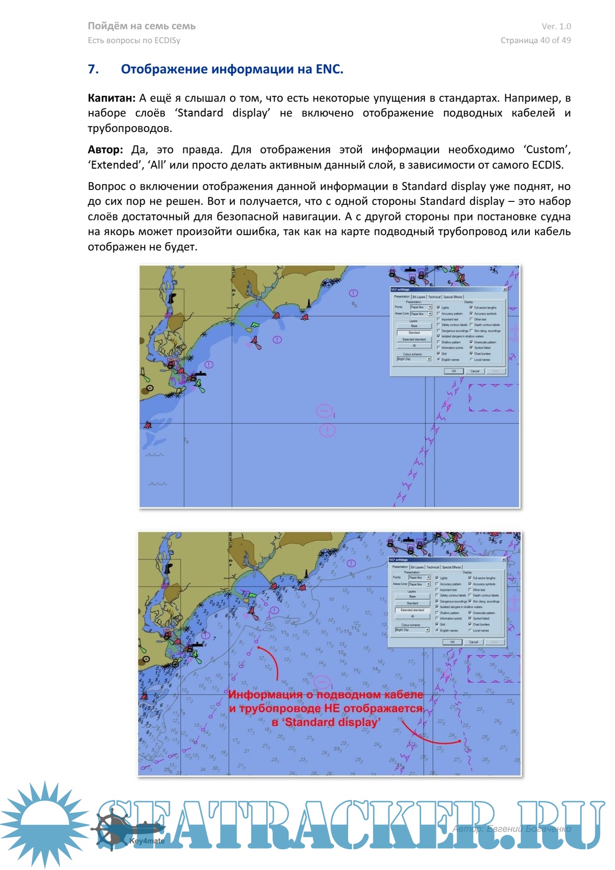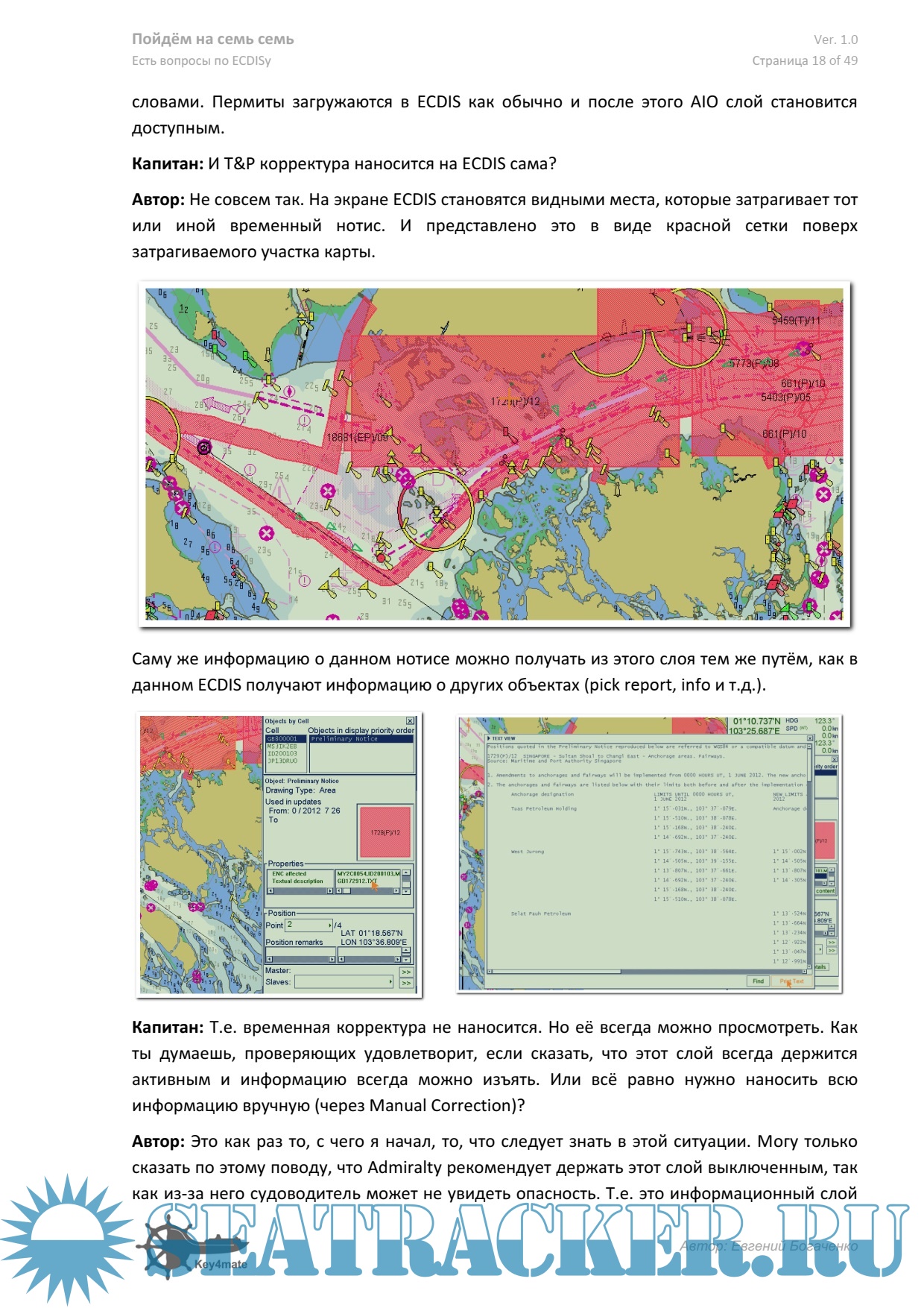 Данную книгу можно использовать как уникальное руководство для самообучения работе с ECDIS. И нужно помнить: “ECDIS training is about more than just knowing where the menus are; it’s about knowing where YOU are.” Богаченко Е.