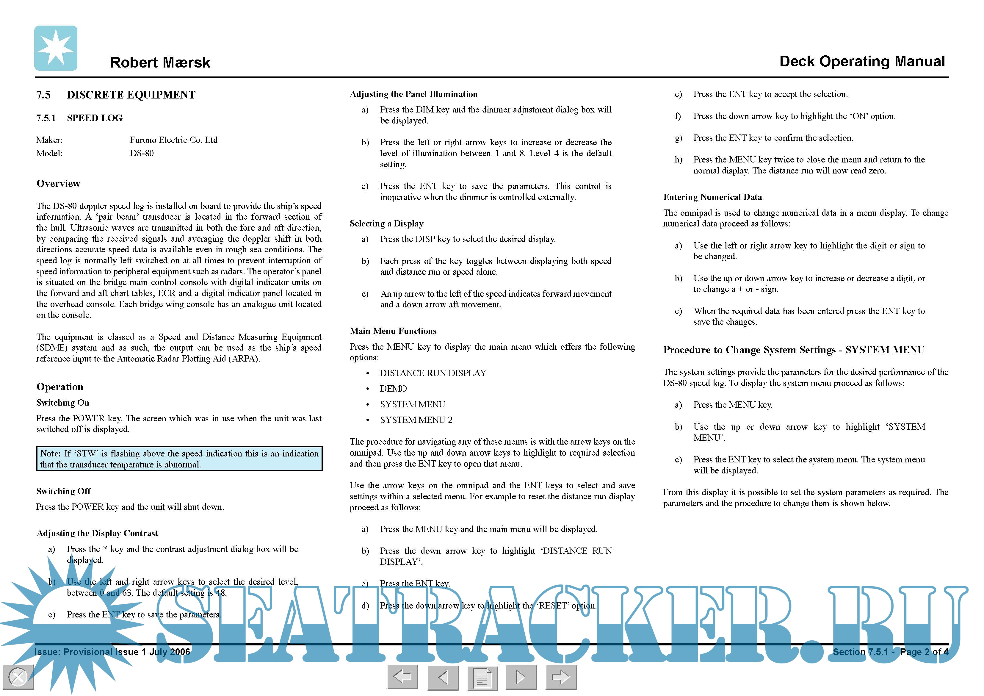 CPT Maersk Ramsey – IMO 9275268 - Machinery Operating Manual - DALIAN SHIPYARD [2004, PDF]