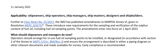 • New procedures for in-use and onboard fuel oil sampling (reg. 14.8 and .9)