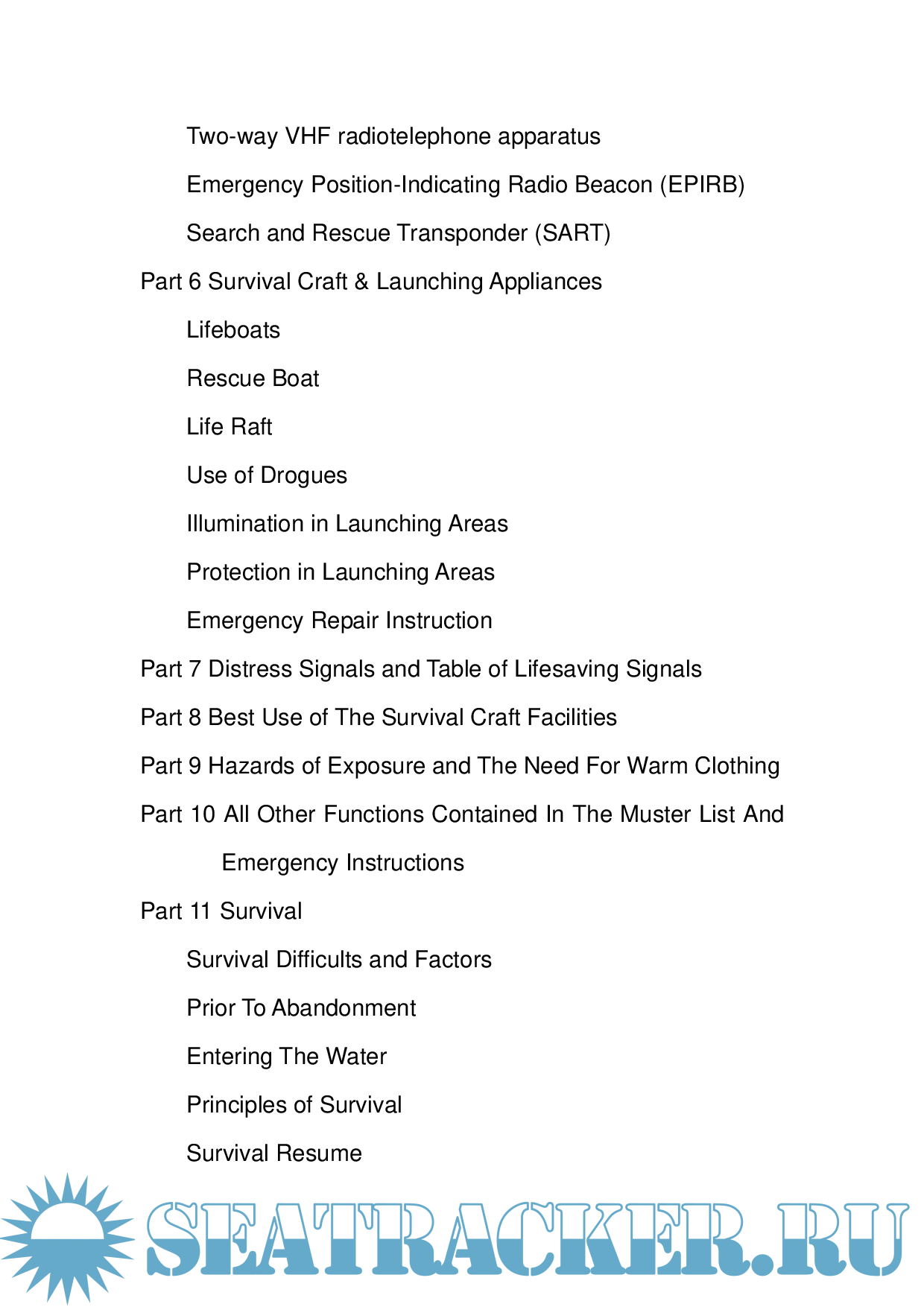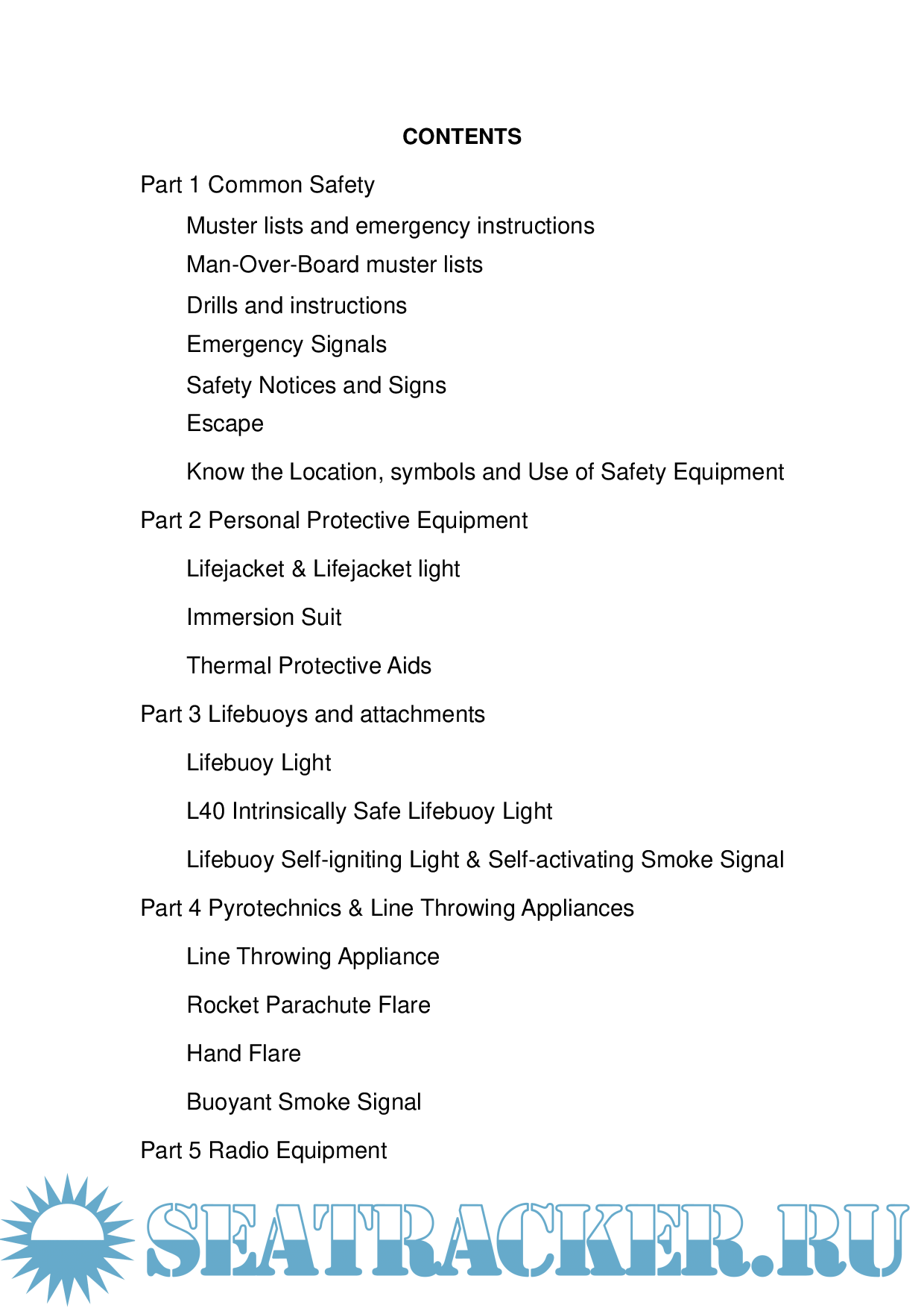 The purpose of this Training Manual is to provide all members of the ship with instructions and information on the lifesaving appliance provided on the ship, and on the best methods of survival.