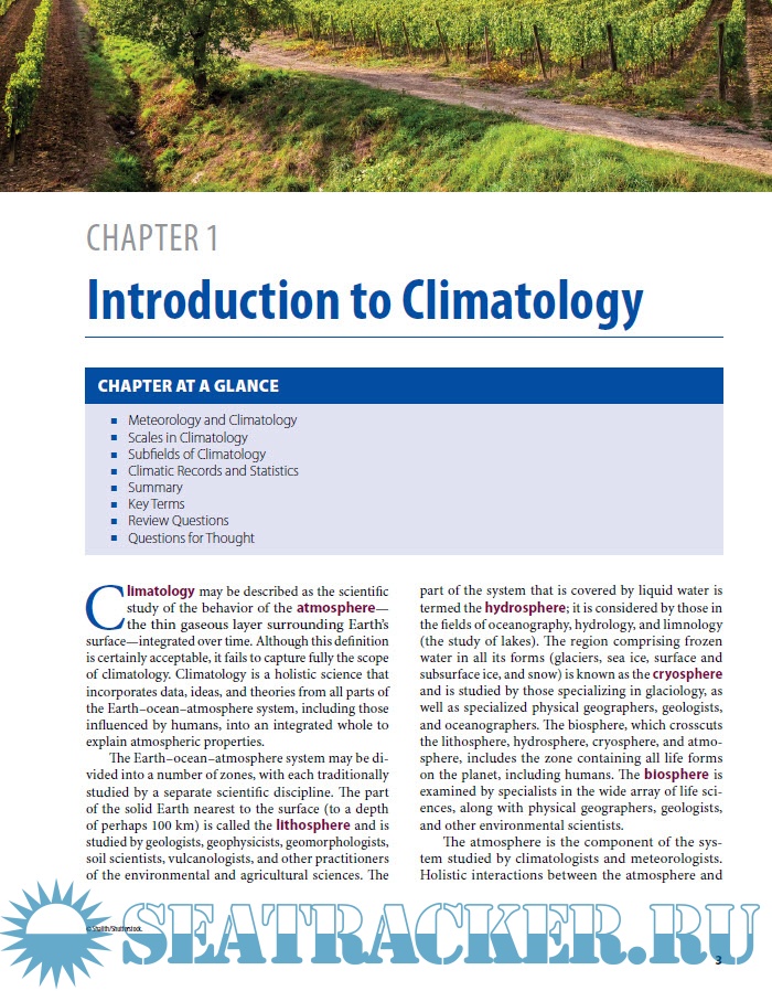 Year: 2018 Language: english Author: Robert V. Rohli & Anthony J. Vega Genre: Textbook Publisher: Jones & Bartlett Learning Edition: 4th ISBN: 9781284126563 Format: PDF Quality: eBook Pages count: 433 Description: Welcome to the exciting journey of learning about one of the most widely discussed sciences. Praised for its detail and accuracy, Climatology continues to lead as the most comprehensive presentation of our dynamic climate system. The Fourth Edition features a completely revised, full-color art program that enhances clarity and gradation of all maps, climographs, and images to help readers better understand the diversity of climate within varying climate types. The text appeals to all students, as it covers the basics of atmospheric science in the early chapters and provides the breadth and depth of topics to challenge the more experienced reader. Climatology, Fourth Edition aims to improve students’ communication skills, encourage critical-thinking, and invoke a sense of social responsibility, making it the clear choice in this rapidly developing science.