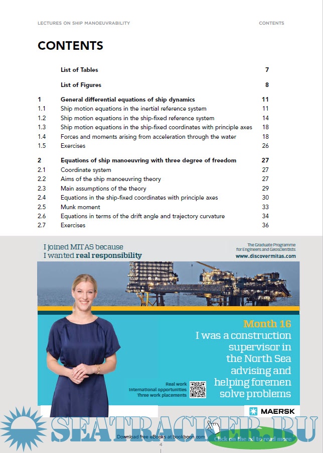 Year: 2019 Language: english Author: Prof. Dr.-Ing. habil. Nikolai Kornev Publisher: Bookboon learning Edition: 1st ISBN: 978-87-403-0559-3 Format: PDF Quality: eBook Pages count: 181 Description: This book is written on the base of a lecture course taught by the author at the Faculty of Mechanical Engineering and Marine Technology at the Rostock University in Germany. The course contains fourteen lectures which include main principles of ship manoeuvrability. Experimental, theoretical and numerical methods used in the ship theory are presented in a clear and simple form. Each chapter is supplied with exercises which can be solved either analytically or using software provided by the author. An optional chapter is devoted to wing in ground effect dynamics. The only prerequisite for the course is the knowledge of general fluid dynamics.