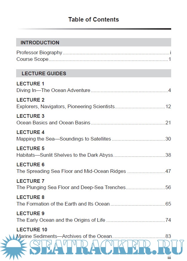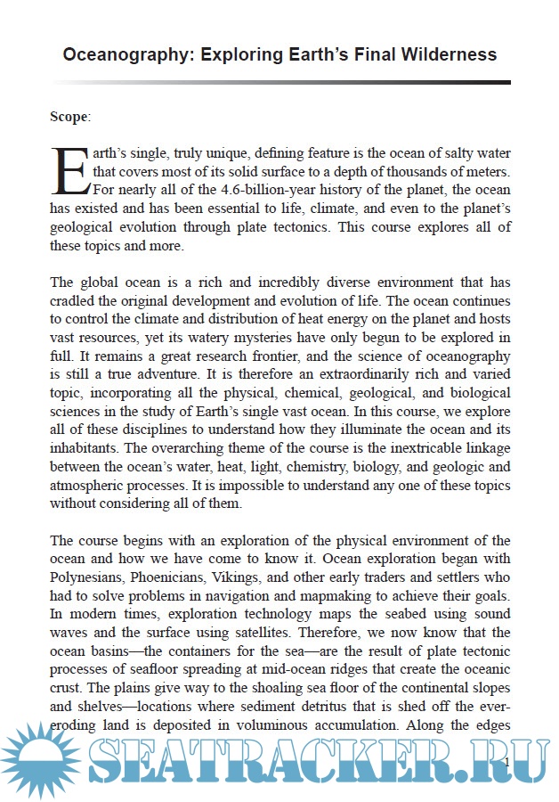 Description: Oceanography is one of the most exciting areas in science, combining the thrill of exploring an otherworldly realm with the insights it gives into how the Earth works in all of its domains. Join us on a scientific expedition to fathom the ocean's mysteries in 36 intensively illustrated half-hour lessons delivered by a professor and ocean researcher who has visited and mapped underwater landscapes that no human eyes had ever seen before. These lessons can be followed by anyone with a curiosity about the ocean, regardless of his or her background in science. You relive the most stunning discoveries of the last 50 years, assembling the many pieces of the puzzle to gain a comprehensive picture of how the ocean works and how it affects the atmosphere, continents, and the web of life. Above all, you will learn to see the ocean as a single entity of striking complexity. Despite the names we have assigned to different regions of the ocean - Atlantic, Pacific, Indian, Arctic - they are all one continuous body of water, dominating the planet with features such as mid-ocean ridges that encircle the globe like the seams on a baseball. Once you've reviewed the history of sea exploration, meet the incredible diversity of life that depends on the ocean, from the graceful dolphins to the unearthly creatures in the deepest trenches. Investigate the special properties of ocean water that make it indispensable to life. Finally, get a glimpse into the future of the ocean and humanity's role in defining that destiny.