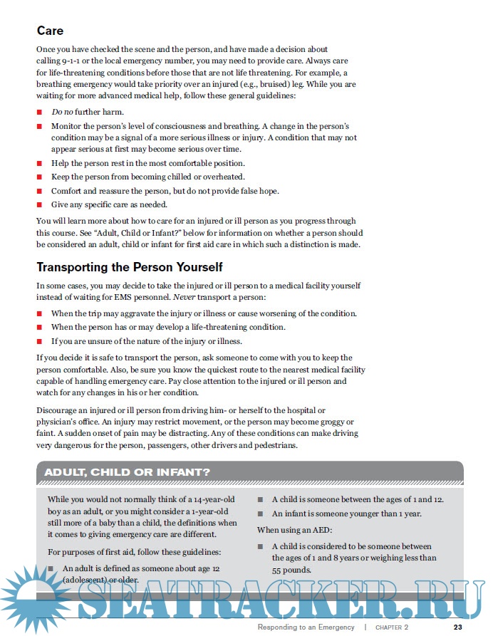 The emergency care procedures outlined in this book reflect the standard of knowledge and accepted emergency practices in the United States at the time this book was published. It is the reader’s responsibility to stay informed of changes in emergency care procedures.