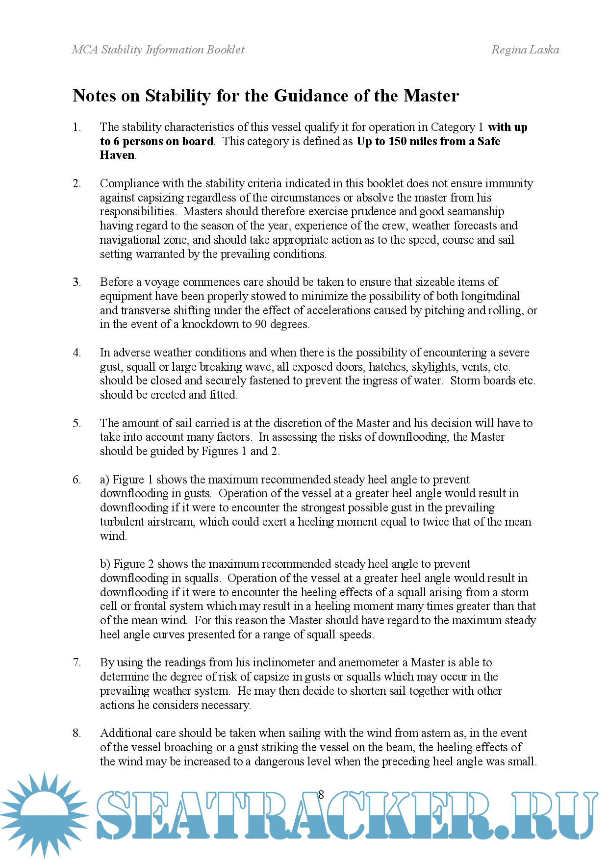 Sailing Yacht Regina Laska - MCA Stability Information Booklet