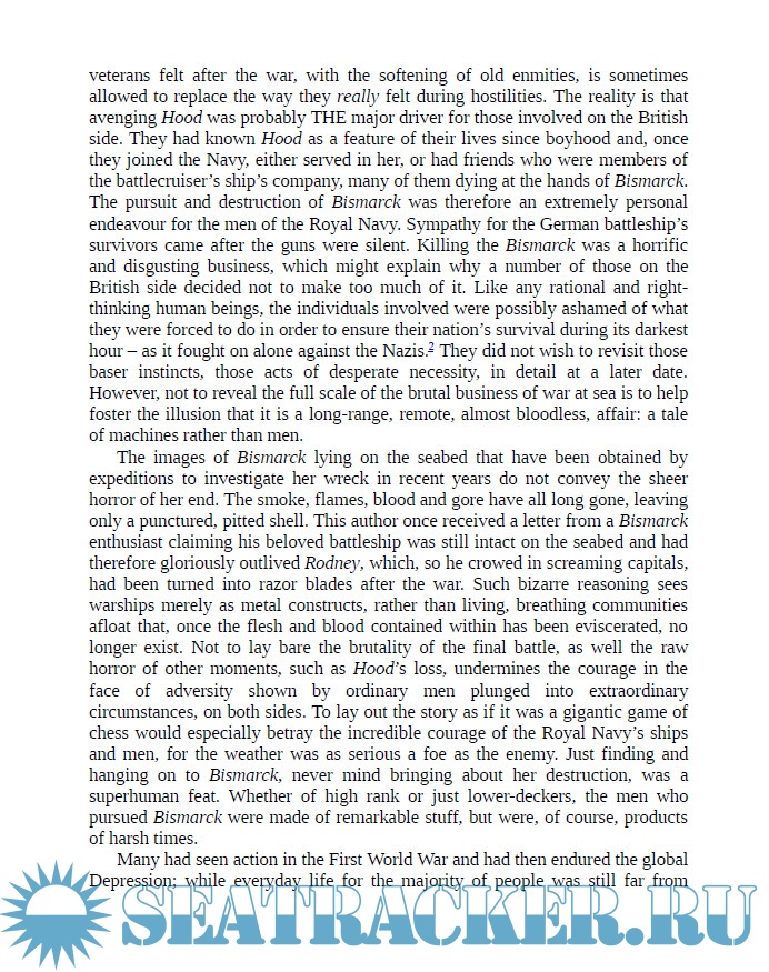 Year: 2010 Language: english Author: Iain Ballantyne Genre: History Publisher: Pen & Sword Maritime ISBN: 978-1844159833 Format: PDF Quality: eBook Pages count: 415 Description: In May 1941, the German battleship Bismarck, accompanied by heavy cruiser Prinz Eugen, broke out into the Atlantic to attack Allied shipping. The Royal Navy 's pursuit and subsequent destruction of Bismarck was an epic of naval warfare. Astonishingly, nearly seventy years on, this new book by Iain Ballantyne, Killing the Bismarck, alters our perception of this legendary episode, by focusing on the eyewitness accounts of British sailors, marines and carrier aviators, some of them published for the first time in a compelling narrative. During this action-packed story we go aboard cruisers playing a lethal cat and mouse game as they shadow Bismarck and experience the horror of the British battlecruiser Hood's destruction, a disaster that filled the men of pursuing Royal Navy units with a thirst for revenge. We fly in Swordfish torpedo-bombers as valiant aircrews take off in atrocious weather and defy storms of anti-aircraft fire during desperate bids to cripple Bismarck. We sail in destroyers as they make daring torpedo attacks, battling mountainous seas. During the final showdown battleships Rodney and King George V, supported by cruisers, destroy the pride of Hitler's fleet in a close-quarters battle, the terrible reality of which has never been fully depicted in print before. We also experience Winston Churchill's anxious vigil and learn of the key role the victory played in establishing the 'Special Relationship' between the USA and UK. The author analyses the myths surrounding Bismarck and her destruction, considering whether they have any substance. Included are portraits of the short fighting lives of legendary British warships, such as the battleship Prince of Wales and destroyer Cossack as well as men who sailed to death or glory in them. Providing a harrowing insight into the unremitting cruelty of war at sea, as well as the courage and compassion of frail humans pitted against savage weather and plunged into brutal combat, Killing the Bismarck is delivered with the verve of a novel, taking the reader on a roller-coaster ride in which each twist and turn yields new shocks.
