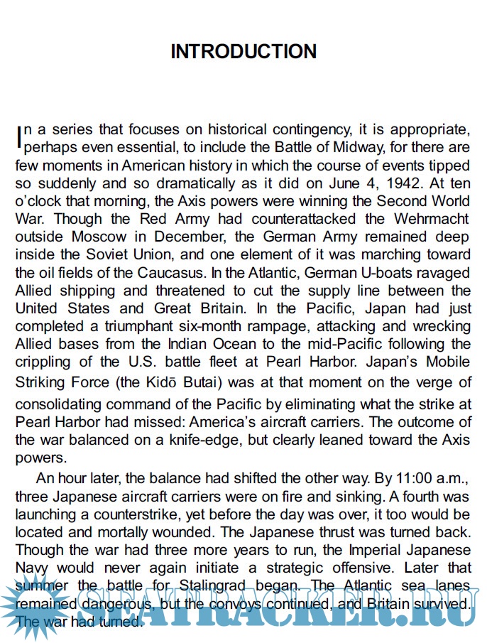 Description: There are few moments in American history in which the course of events tipped so suddenly and so dramatically as at the Battle of Midway. At dawn of June 4, 1942, a rampaging Japanese navy ruled the Pacific. By sunset, their vaunted carrier force (the Kido Butai) had been sunk and their grip on the Pacific had been loosened forever.
