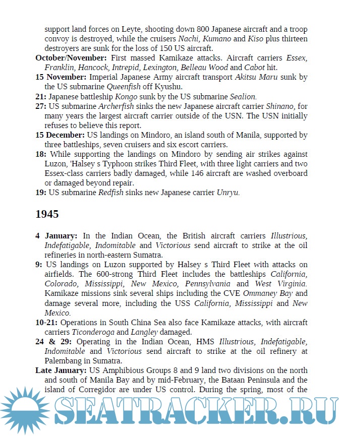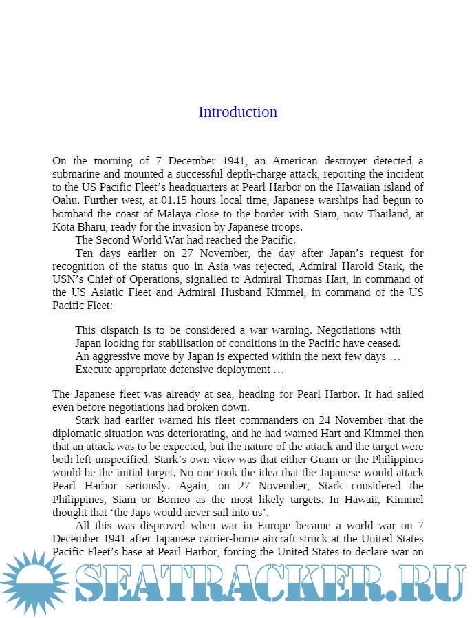Year: 2011 Language: english Author: David Wragg Genre: History Publisher: Pen & Sword Maritime ISBN: 978-1-84884-283-0 Format: PDF Quality: eBook Pages count: 246 Description: The Pacific Naval War 1941-1945 is an account of the war between the Allies and the Japanese. This was primarily a naval war as sea power allowed the Japanese to mount their attack on Pearl Harbor and then advance westwards and southwards, and it was sea power that enabled the Allies to strike back and even take the war to Japan itself. The tide turned very quickly, with the overwhelming US victory at Midway in June 1942 ending any Japanese hope of domination, and eventually saw the greatest naval battle in history at Leyte Gulf as American forces retook the Philippines.