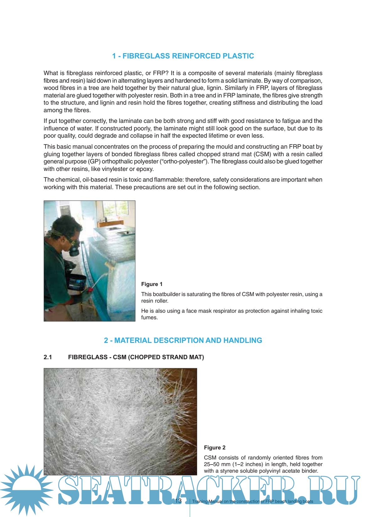 Description: This manual on construction of fibreglass reinforced plastic (FRP) beach landing boats has been prepared primarily to assist small boatyards in Tamil Nadu, India that build beach landing fishing boats, but may also be used as a guide for making good quality FRP boats as well as for FRP training in the region. The manual should be seen as a supplement to FRP boatbuilding manuals available in the Food and Agriculture Organization of the United Nations (FAO) and other international publ ications. It assumes prior knowledge of FRP hand lay-up processes and terms generally used in the industry. Recommendations on working conditions, materials and quality control are based on tropical ambient conditions and the type of boatyards likely to build such boats. Part I of the manual contains general information on FRP materials, handling and working conditions. Part II describes the building of a hull plug and a mould and Part III describes the building of a beach landing boat. Finally, Part IV contains information on manufacturing defects and repairs. The manual has four annexes that provide further information related to FRP boatbuilding. Annexes 1 and 2 contain a bibliography and a glossary, respectively. All drawings for the FAO IND-30 boat design are provided in Annex 3. Finally, Annex 4 contains the draft recommended construction standards for FRP fishing vessels. These standards are a part of the FAO/ILO/IMO Safety recommendations for decked fishing vessels of less than 12 m in length and undecked fishing vessels, which are currently under development.