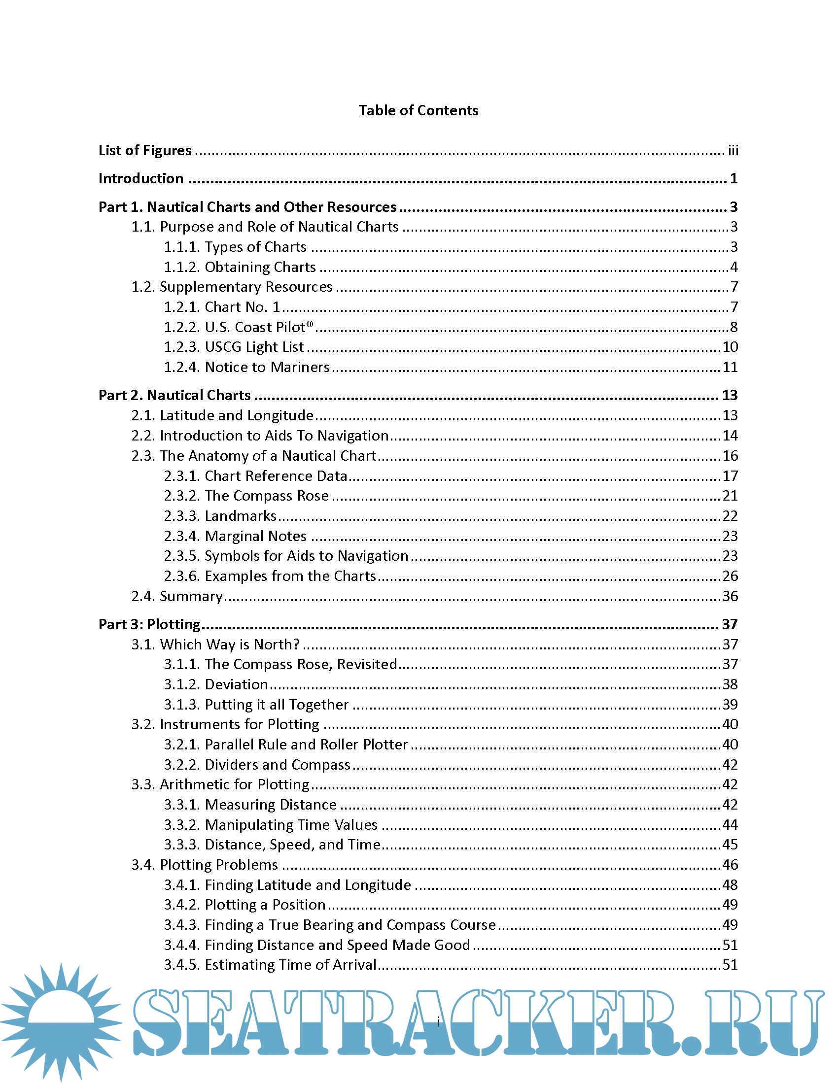 The focus of this document is on printed charts as well as reading and plotting using hand tools.Marine
