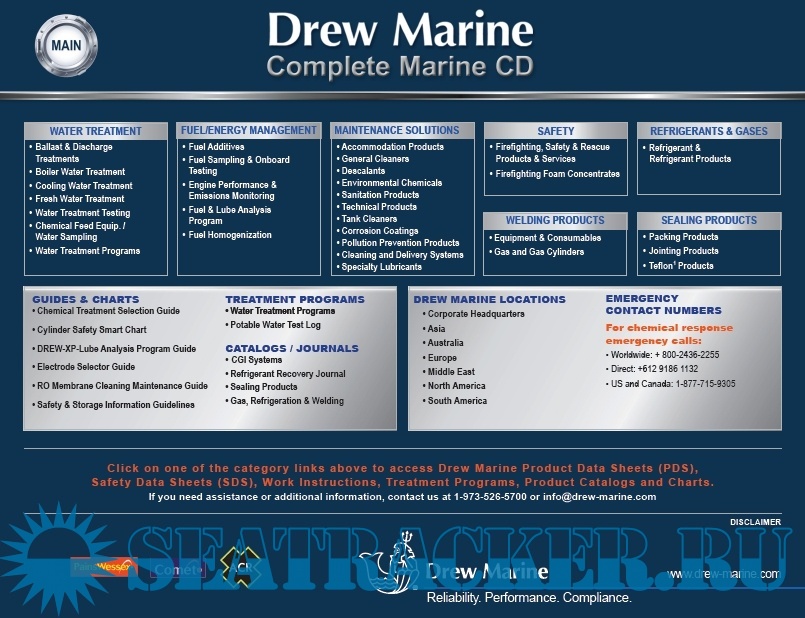 Description: The Drew Marine Complete CD is an comprehensive collection of information on board range of innovative technologies and solutions for the global marine industry. This program provides you with Product Data Sheets (PDS), Material Safety Data Sheets (MSDS), Work Instructions and Treatment Programs from Drew Marine's extensive product and solutions offering.
