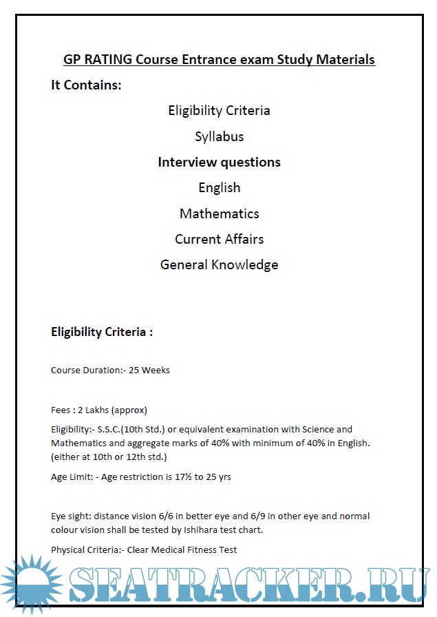 Description: GP Rating Course Entrance exam Study Materials