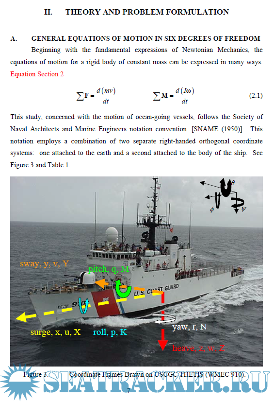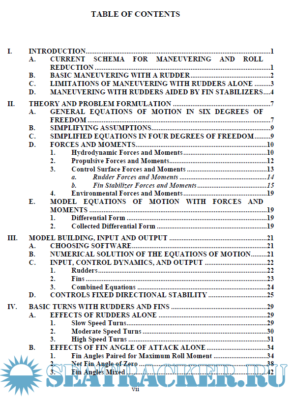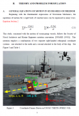 Description: Roll angle is often a limiting factor during high-speed turns and repetitive turning manoeuvres. Navy and Coast Guard surface ships are designed for high-speed operation. Sharper turns at higher speeds and repetitive high-speed turns can increase ship survivability by helping these vessels avoid incoming threats. This is particularly true if the amount and direction of roll during the turn are controlled, since the ship’s susceptibility to radar and other sensors may be diminished at certain angles. Sharper turns at higher speeds can also reduce the time it takes to reach a person in the water, improving the chances for a successful rescue. Controlled roll during repetitive sharp turns can make high-speed pursuit safer and more likely to succeed. The objective of this thesis is to study the effects of fin stabilizers on a ship’s turning performance. Fin stabilizers, commonly added to a ship design for the sole purpose of minimizing unwanted roll during ordinary operations, are shown to also favourably influence both the magnitude and direction of heel experienced during high speed and repetitive manoeuvres. The effects of fin stabilizers on other turn performance characteristics are also examined. A strategy for actively employing fins during manoeuvres is proposed.