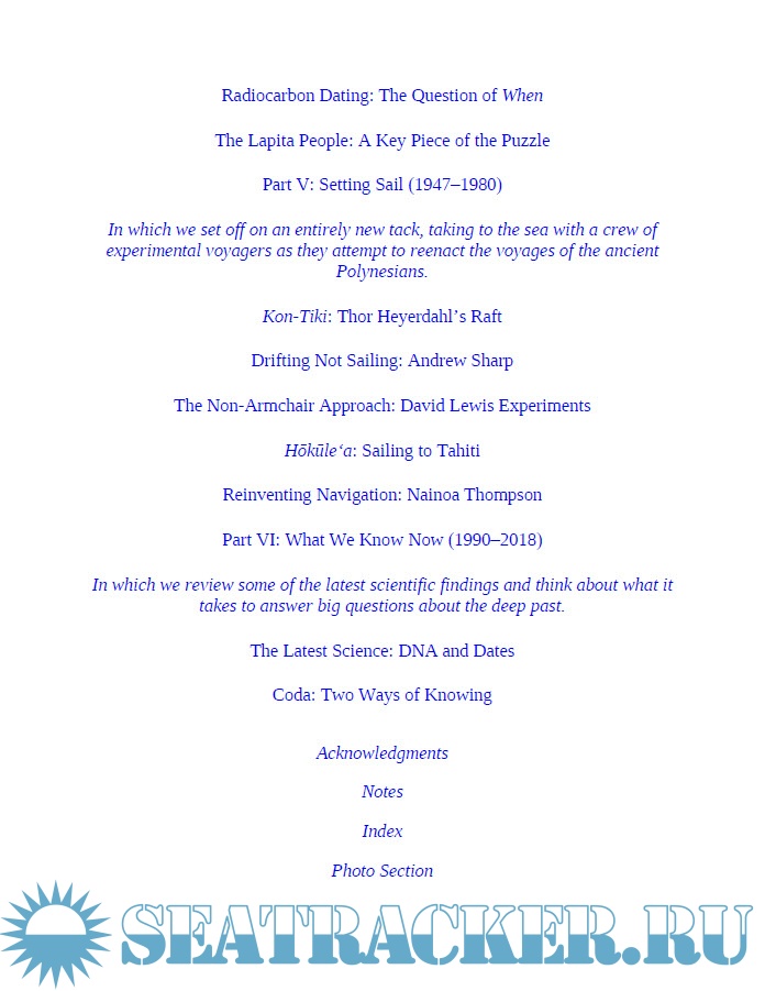 Year: 2019 Language: english Author: Christina Thompson Genre: History Publisher: Harper Collins Edition: 1st ISBN: 978-0-06-206087-7 Format: PDF Quality: eBook Pages count: 331 Description: A blend of Jared Diamond’s Guns, Germs, and Steel and Simon Winchester’s Pacific, a thrilling intellectual detective story that looks deep into the past to uncover who first settled the islands of the remote Pacific, where they came from, how they got there, and how we know. For more than a millennium, Polynesians have occupied the remotest islands in the Pacific Ocean, a vast triangle stretching from Hawaii to New Zealand to Easter Island. Until the arrival of European explorers they were the only people to have ever lived there. Both the most closely related and the most widely dispersed people in the world before the era of mass migration, Polynesians can trace their roots to a group of epic voyagers who ventured out into the unknown in one of the greatest adventures in human history. How did the earliest Polynesians find and colonize these far-flung islands? How did a people without writing or metal tools conquer the largest ocean in the world? This conundrum, which came to be known as the Problem of Polynesian Origins, emerged in the eighteenth century as one of the great geographical mysteries of mankind. For Christina Thompson, this mystery is personal: her Maori husband and their sons descend directly from these ancient navigators. In Sea People, Thompson explores the fascinating story of these ancestors, as well as those of the many sailors, linguists, archaeologists, folklorists, biologists, and geographers who have puzzled over this history for three hundred years. A masterful mix of history, geography, anthropology, and the science of navigation, Sea People combines the thrill of exploration with the drama of discovery in a vivid tour of one of the most captivating regions in the world. Sea People includes an 8-page photo insert, illustrations throughout, and 2 endpaper maps.