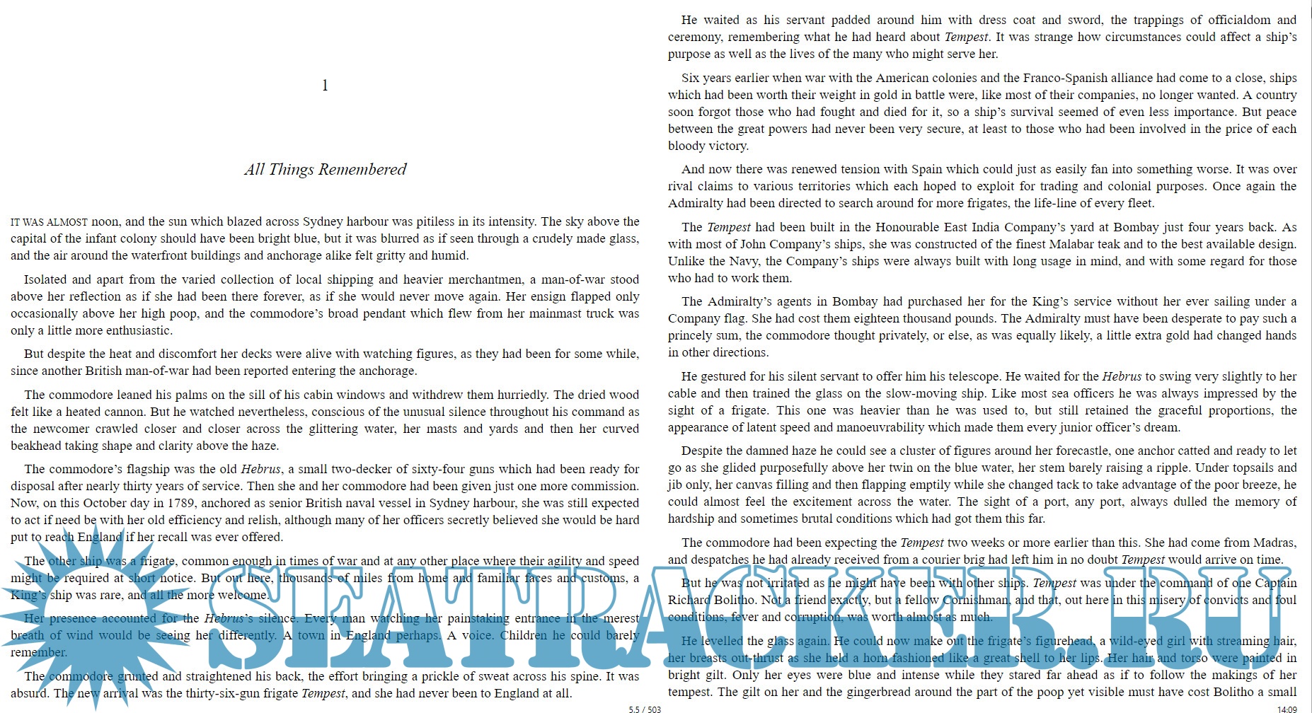Description: Into Sydney, capital of Britain's infant colony, sails the frigate Tempest. She is one of His Majesty's ships employed in policing the new southern trade routes. Her captain is Richard Bolitho, who hopes to be ordered home to England.