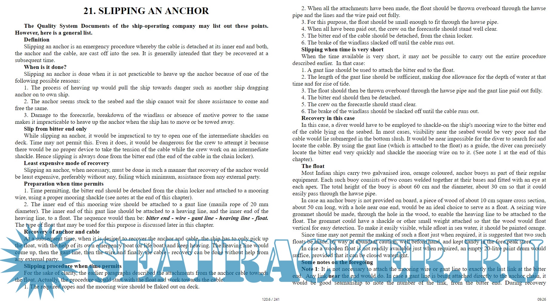 Additional info: The book has been revised to become up to date with current practices at sea mainly due to advances in electronic instrumentation.