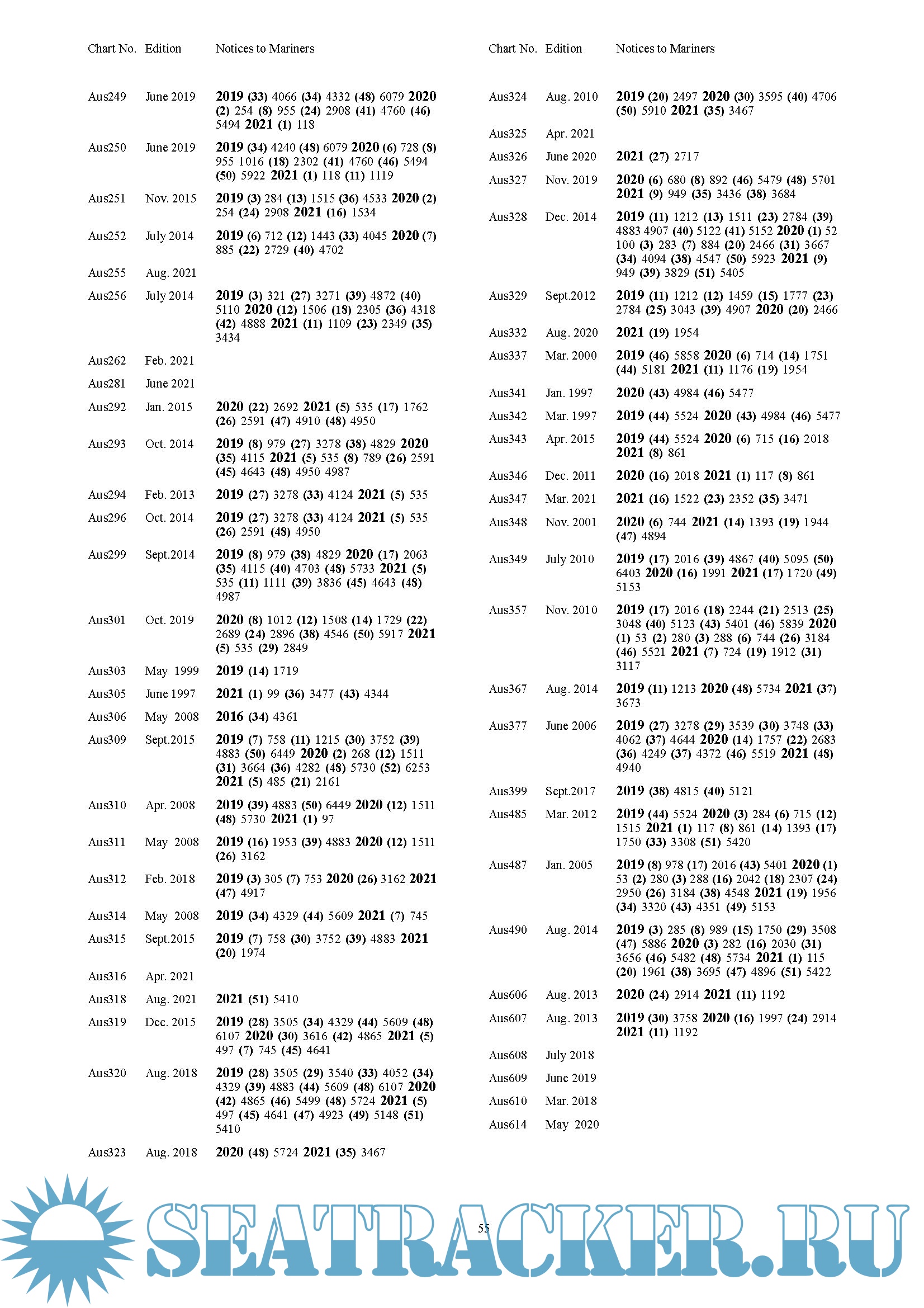 Year: 2022 Language: english Author: UKHO Format: PDF Quality: eBook Pages count: 70 Description: The Cumulative List of ADMIRALTY Notices to Mariners (NP234 A) can help you to identify outstanding NMs and audit trails for a particular chart or charts. The list is published annually, with Part A in January