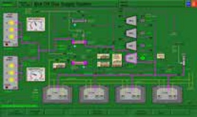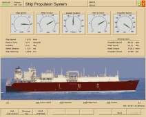 Description: Simulator for steam propulsion plant. 2 main boilers on MDO/HFO/BOG. Main propulsion steam turbine. Turbo pumps, etc.