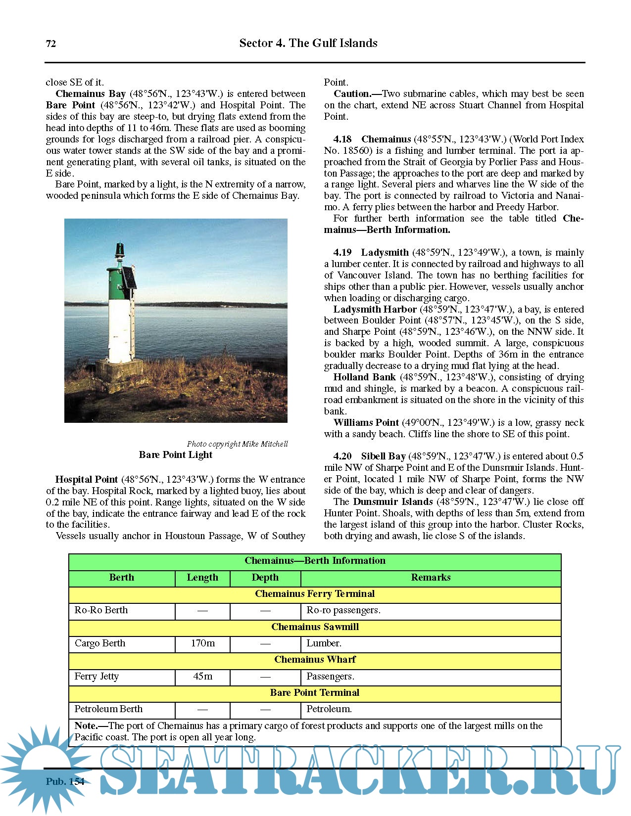Year: 2022 Language: english Author: National Geospatial Intelligence Agency Genre: Documentation Edition: 16th Format: PDF Quality: eBook Pages count: 309 Description: Pub. 154, Sailing Directions (Enroute) British Columbia, Sixteenth Edition, 2022, is issued for use in conjunction with Pub. 120, Sailing Directions (Planning Guide) Pacific Ocean and Southeast Asia. Companion volumes are Pubs. 153, 155, 156, 157, and 158. Digital Nautical Chart 26 provides electronic chart coverage for the area covered by this publication. This publication has been corrected to 22 January 2022, including Notice to Mariners No. 4 of 2022.