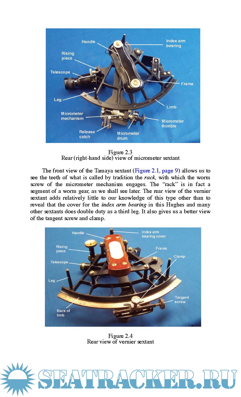 Year: 2010 Language: english Author: W. J. Morris Publisher: Paradise Cay Publications Edition: 1st (October 26, 2010) ISBN: 9780939837892 Format: EPUB/PDF/AZW Quality: eBook Pages count: Multiple Description: The Nautical Sextant reveals in pictures, prose, and perspective the experience and knowledge gained by the author from years of acquiring, studying, and restoring sextants from earlier times and from around the world. This fascinating book owes much of its attraction to the expert description and photos of the mechanics of the sextants and their subassemblies. It is also the story of how different manufacturers, in different times and places, solved the same mechanical problems in different ways in order to perfect one of the most accurate mechanical devices ever produced by man. All of this is complemented by an historical overview to the current day, an overview which has never been published until now. The Nautical Sextant will be of particular value not only to navigators, but also to restorers, collectors, students of technology, curators, and sextant dealers. With its bibliography and extensive use of footnotes, this book will certainly become a classic in its field. This book is as advertised; a comprehensive source of information about sextants. Down to the nuts and springs in the various movving parts. Up to you to know what you want. If you are looking for instructions on using your setant, this is not the book. If you need to repair or restore your sextant, this is it.