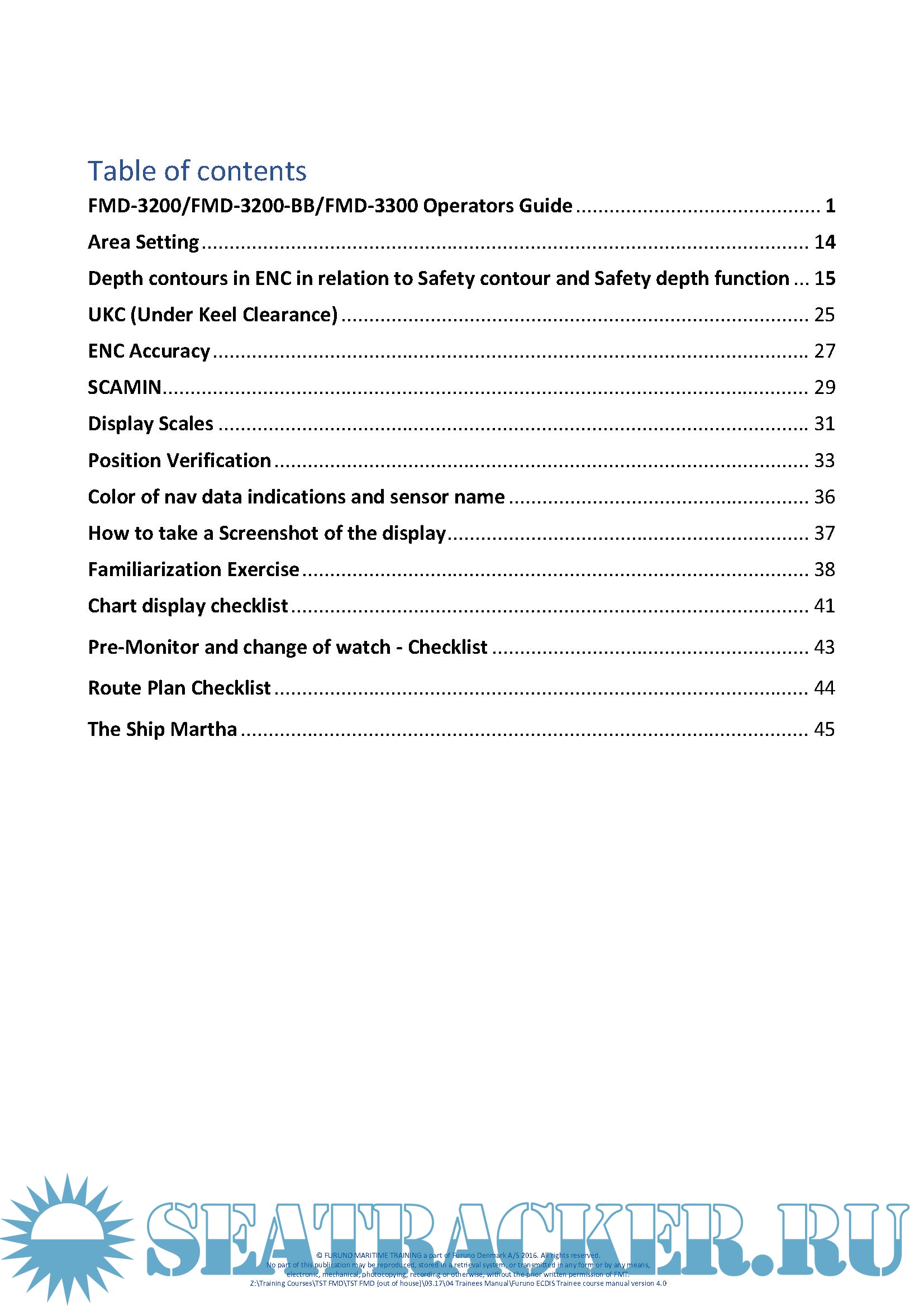 Description: Furuno ECDIS Trainee's course manual for models FMD-3200/FMD-3200-BB/FMD-3300