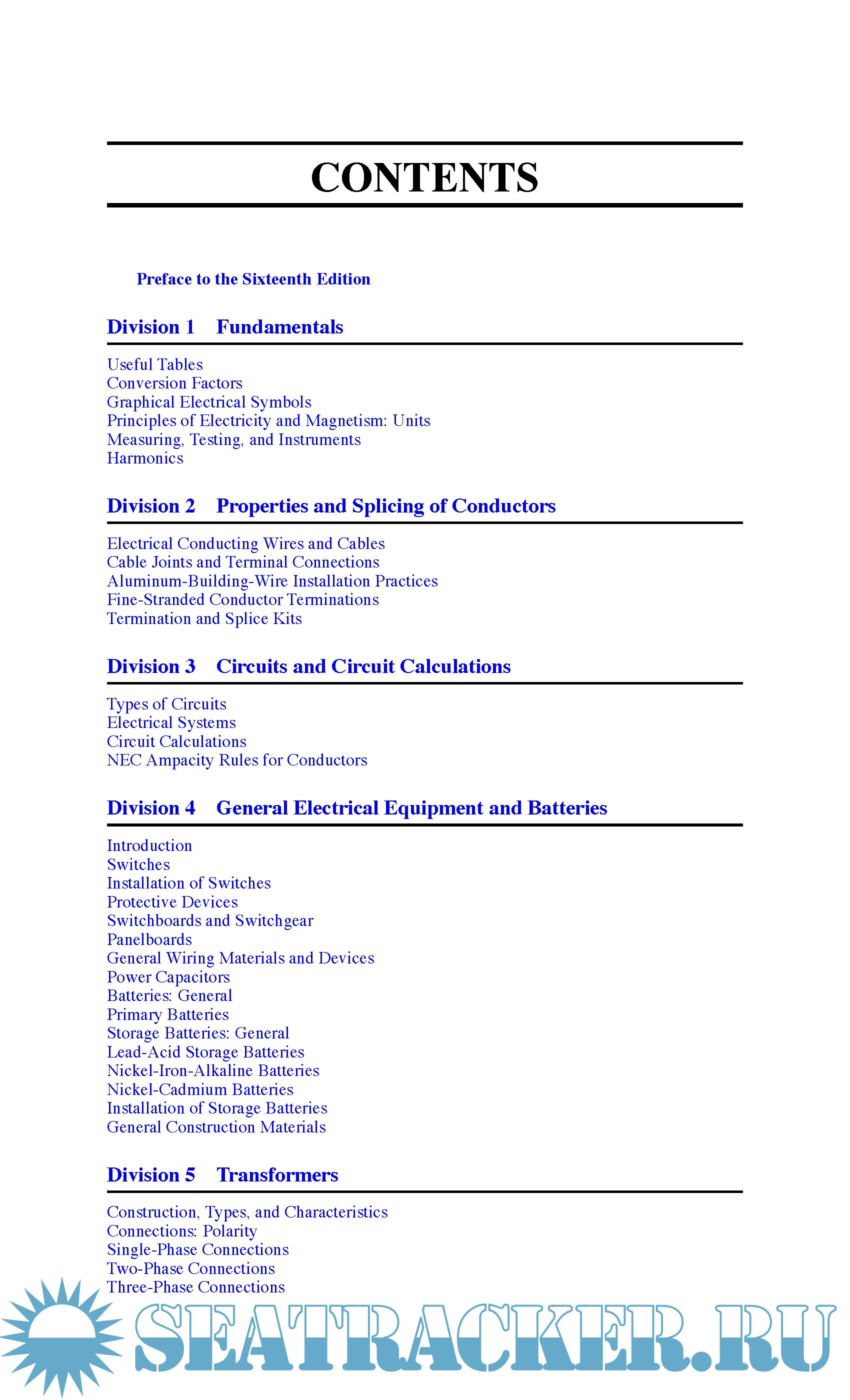 Year: 2013 Language: english Author: Terrell Croft Genre: Technical book Publisher: McGraw-Hill Education Edition: 16th (16 Sept. 2013) ISBN: 9780071798808 Format: EPUB/PDF Quality: eBook Pages count: Multiple (1712 + 2121) Description: Publisher's Note: Products purchased from Third Party sellers are not guaranteed by the publisher for quality, authenticity, or access to any online entitlements included with the product. For a century, the American Electricians' Handbook has served as the definitive industry reference for information on designing, installing, operating, and maintaining electrical systems and equipment. The Sixteenth Edition is revised to complywith the 2011 National Electrical Code and the 2012 National Electrical Safety Code, and covers current energy-efficient technologies, such as photovoltaics and induction lighting. Detailed photos, diagrams, charts, tables, and calculations are included throughout. This practical, on-the-job resource is a must-have tool for every professional electrician. Covers: Fundamentals Properties and splicing of conductors Circuits and circuit calculations General electrical equipment and batteries Transformers Solid-state devices and circuits Generators and motors Outside distribution Interior wiring Electric lighting Optical fiber Wiring and design tables