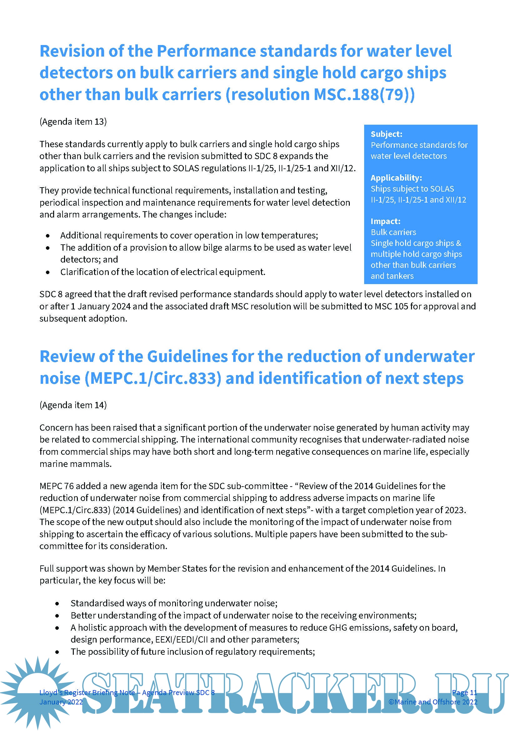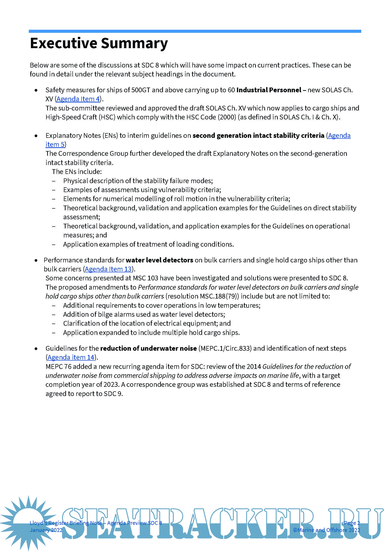 LR Summary Report for the IMO Ship Systems and Equipment Sub-Committee (SSE 8) - Lloyd's…