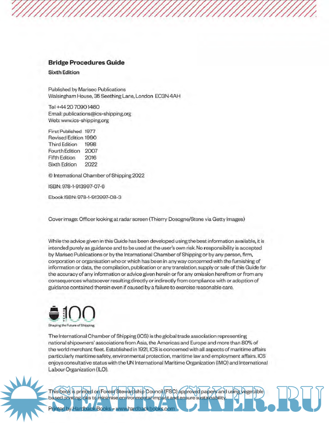 Year: 2022 Language: english Author: ICS Genre: Guide Publisher: Marisec Publications Edition: 2022 ISBN: 978-1-913997-07-6 Format: PDF Quality: Scanned pages Pages count: 196 Description: Best navigational practices and safe bridge operations on commercial ships for Masters & Mates in charge of Navigational Watch. It can also be used as reference by shipping companies, training institutions and other related organizations.