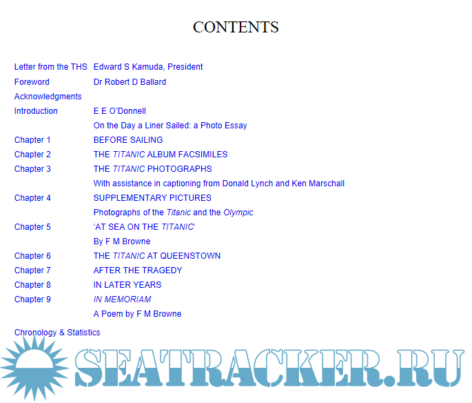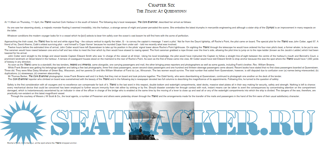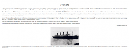 Description: As a passenger on the first two legs of Titanic's ill fated voyage, Father Francis Browne SJ's photographs are an immensely important record. As well as taking a unique set of photos, Father Browne also assembled an incredibly valuable album of Titanic material such as an original deck plan, menus, letters to him from fellow passengers, contemporary newspaper cuttings and other documents, many of which are reproduced here.