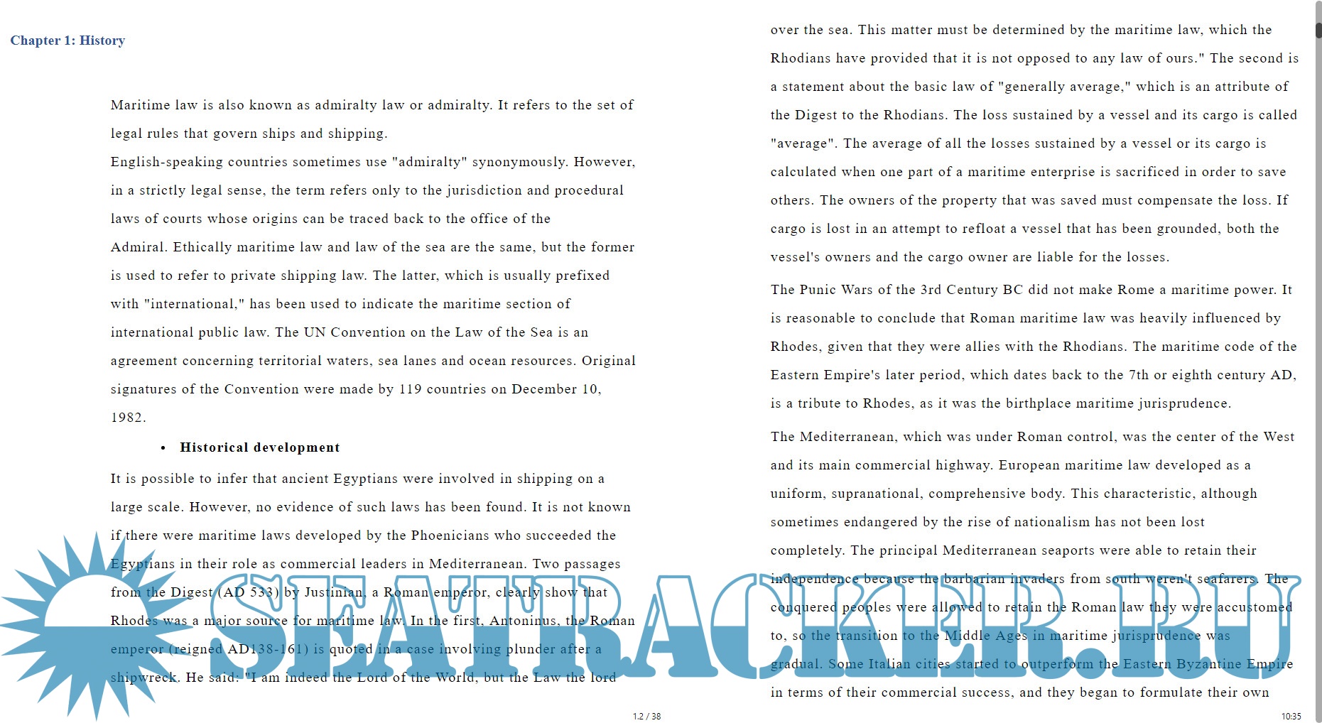 Description: Maritime law is also known as admiralty law or admiralty. It refers to the set of legal rules that govern ships and shipping.