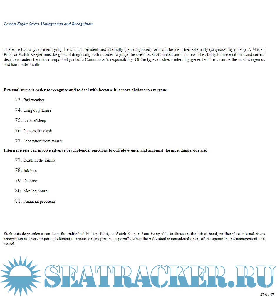 Description: A maritime training course for ships officers suitable of use as a comprehensive introduction to the theory of Bridge Resource Management (BRM). Available in print or download for study at home or at sea. representing the latest Bridge Resource Management operating practices and teamwork management techniques using the principles of non-technical skills evaluation to ensure the safety of the ship, its personnel, cargo, the protection of the environment, and to satisfy the requirements of the STCW in accordance with recommended practices of the IMO, NTSB, and USCG.