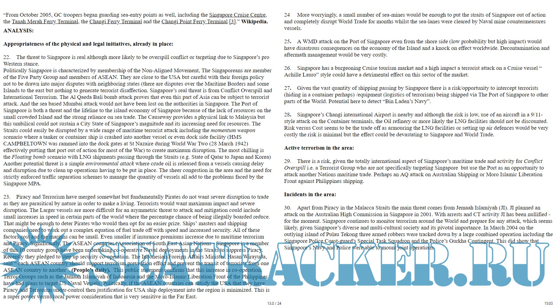 Description: Maritime Security of Singapore is essential to World trade. Steve Moore's dissertation covers essential elements of this subject.