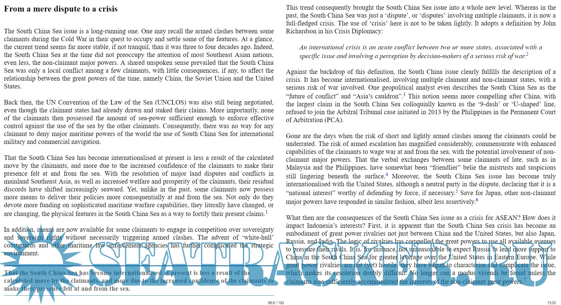 Line in the waters: The South China sea dispute and its implications for Asia