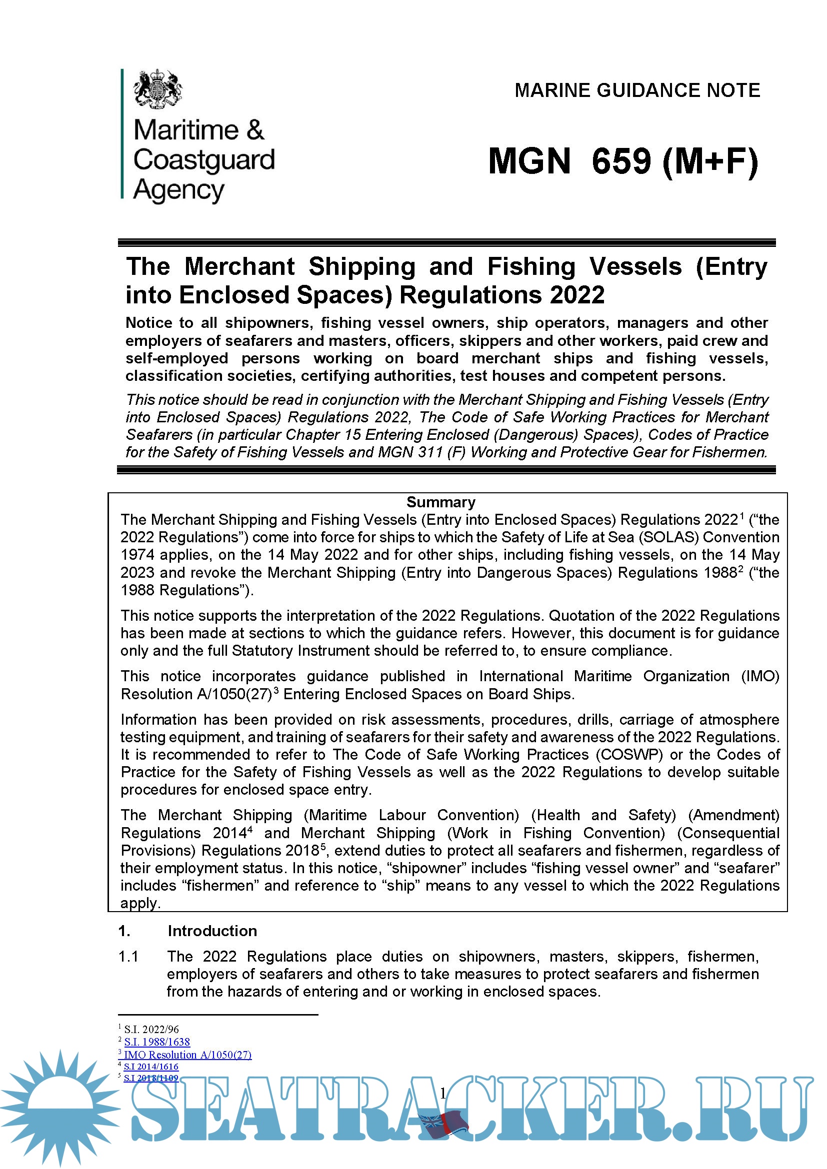 Entry into Enclosed spaces New Regulations MGN 659 (M+F)