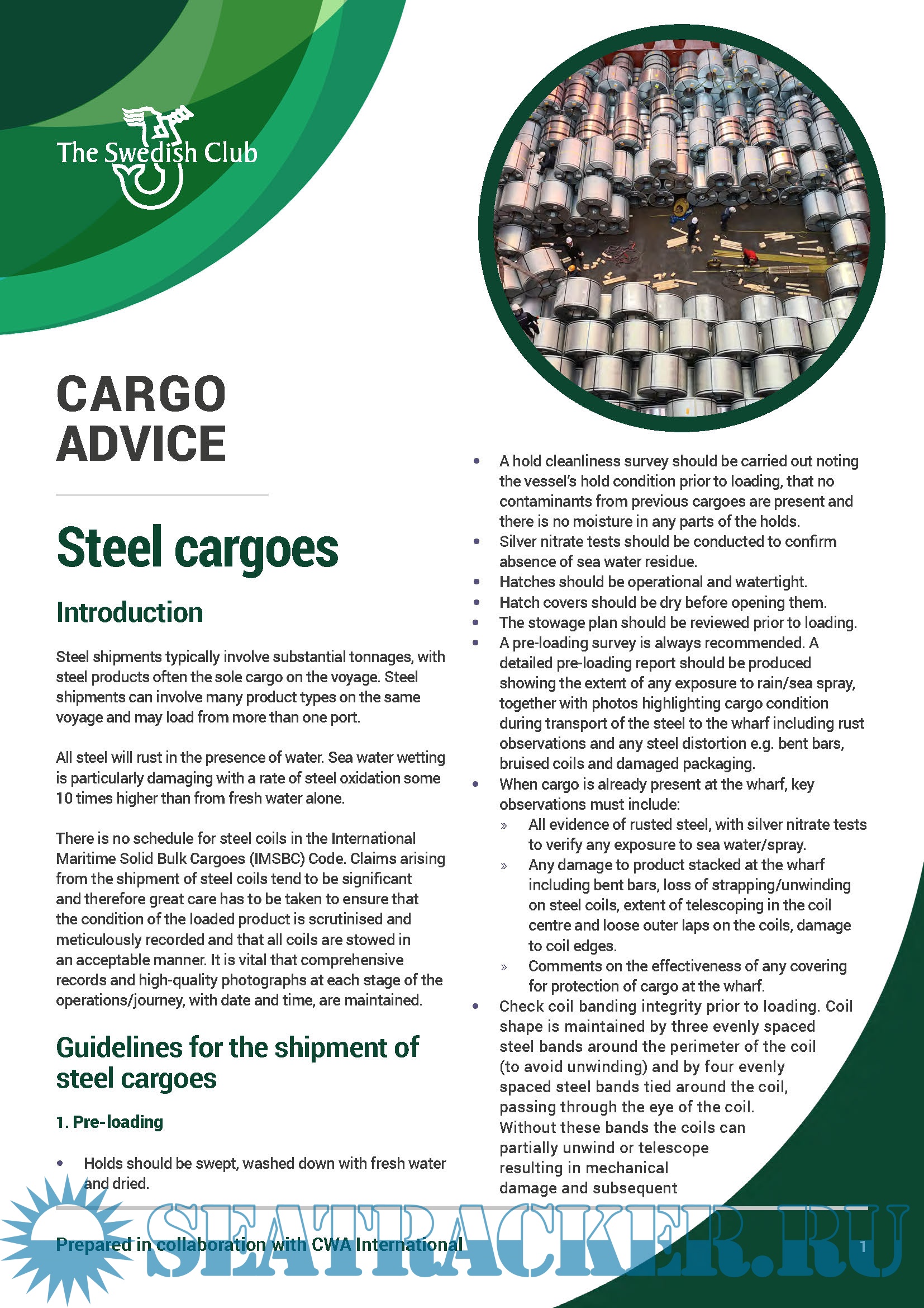 Description: The Swedish Club recently launched a cargo advice Guide, focusing on Steel cargoes shipments.