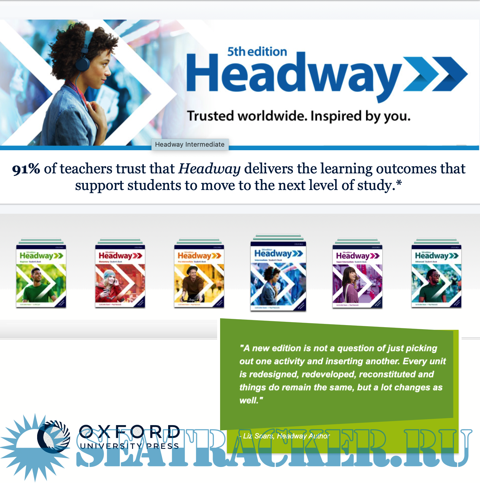 Description: Headway English course for foreigners, 5th edition. The distribution contains levels Beginner, Elementary, Pre-Intermediate, Intermediate, Upper-Intermediate, Advanced.