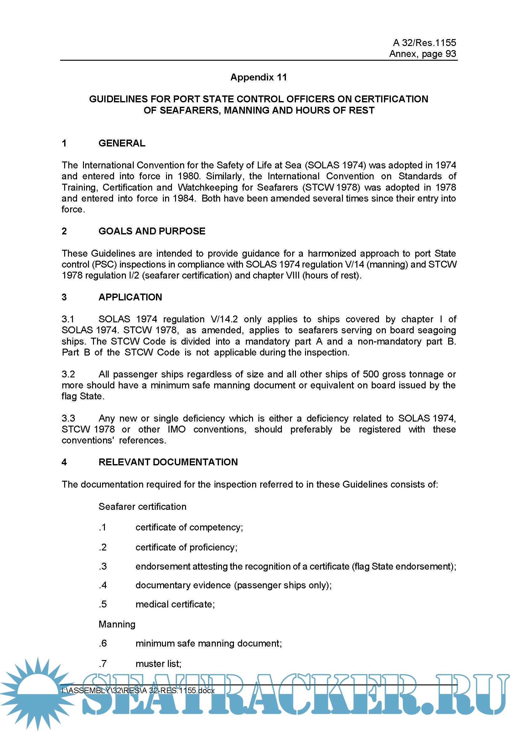 Description: This document is intended to provide basic guidance on the conduct of port State control inspections in support of the control provisions of relevant conventions and parts of the IMO Instruments Implementation Code (III Code) (resolution A.1070(28)) and afford consistency in the conduct of these inspections, the recognition of deficiencies of a ship, its equipment, or its crew, and the application of control procedures.