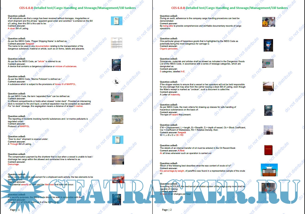 Description: Answers to CES 6.0.8 Cargo Handling and Stowage / Management / Oil tankers